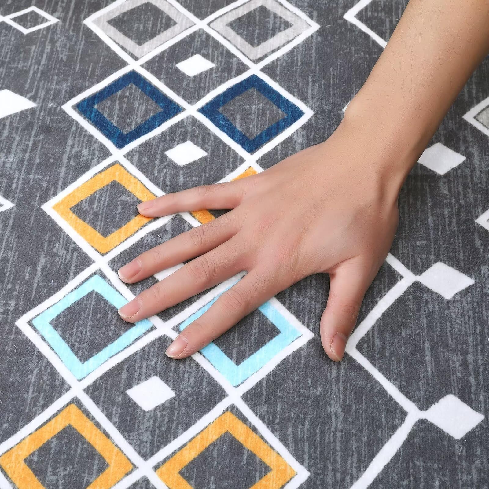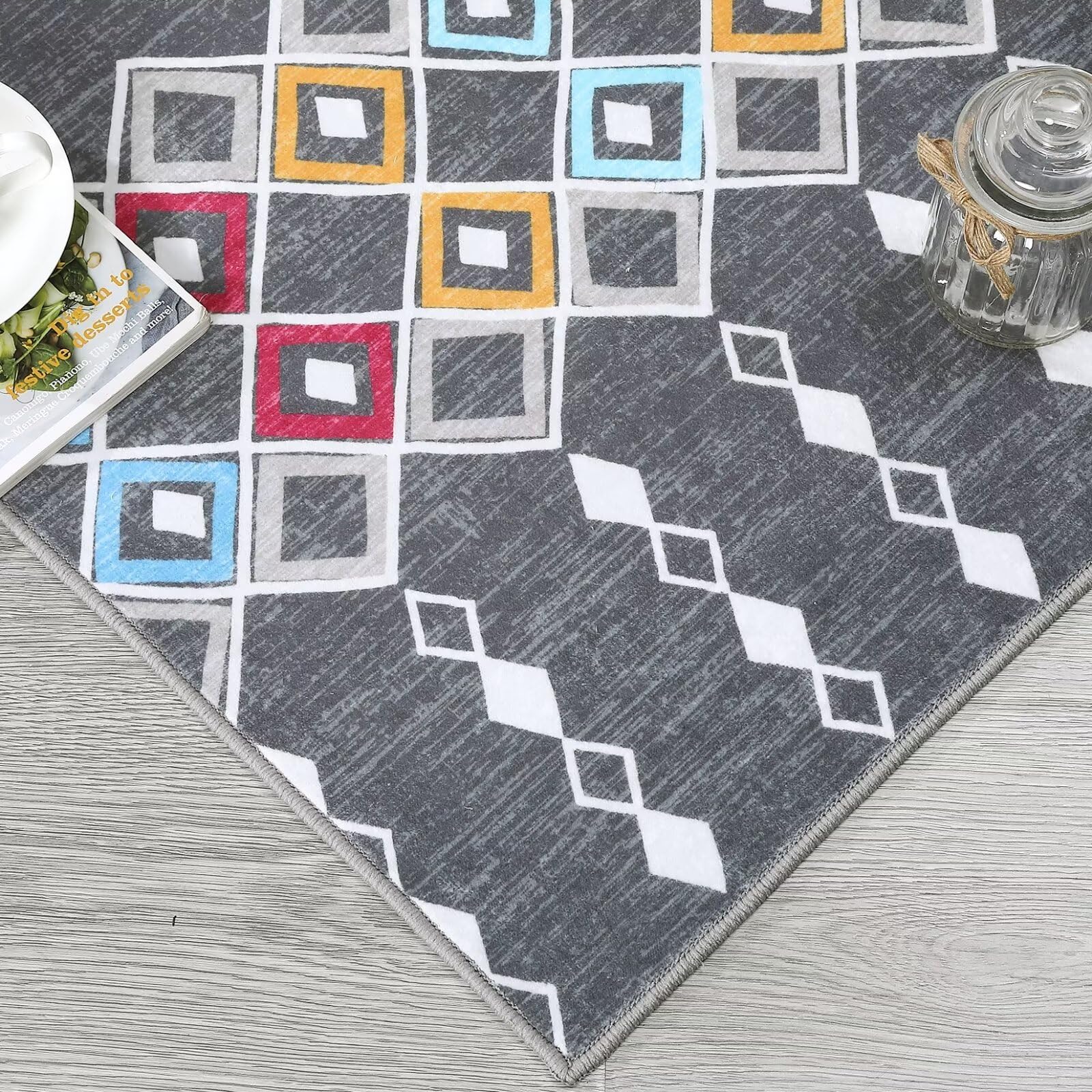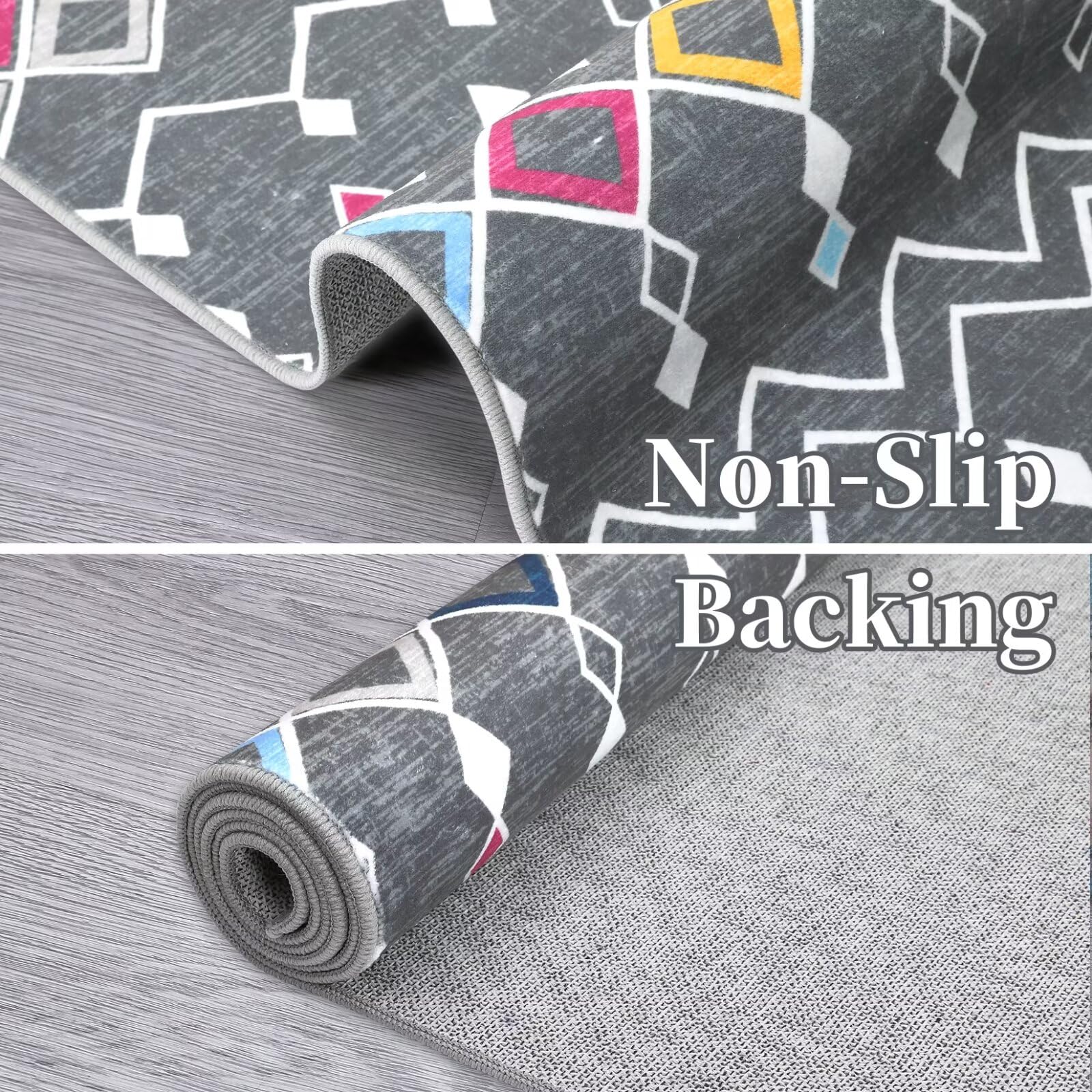Garvee Boho Area Rug 5x7 Vintage Washable Geometric Faux Wool Soft Non-Slip Foldable Thin Non-Shedding Carpet for Living Room Bedroom