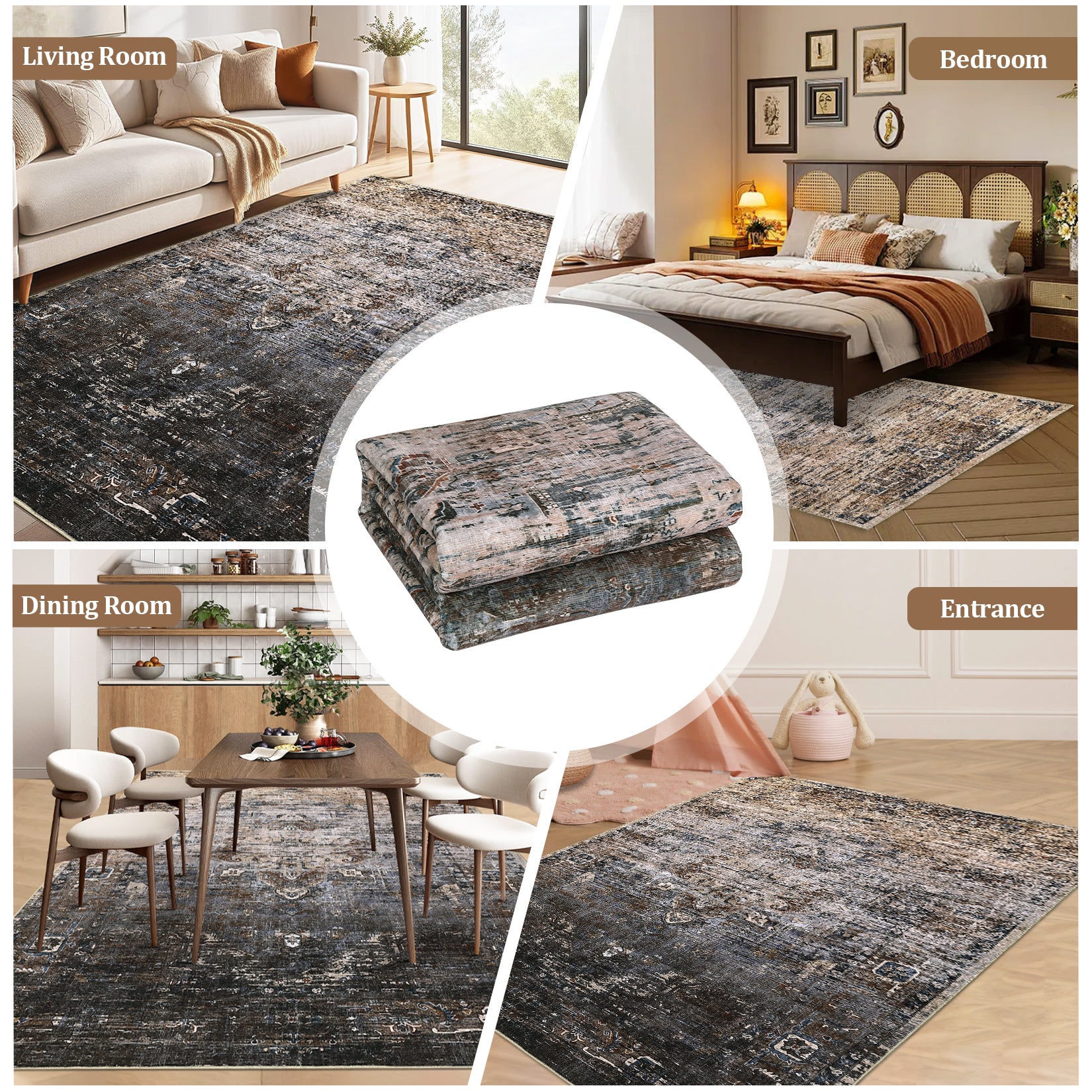 Garvee Boho Area Rug 9x12 - Large Washable Living Bedroom Rug Distressed Oriental Non-Slip Non-Shedding Print Floor Carpet for Dining Room Home