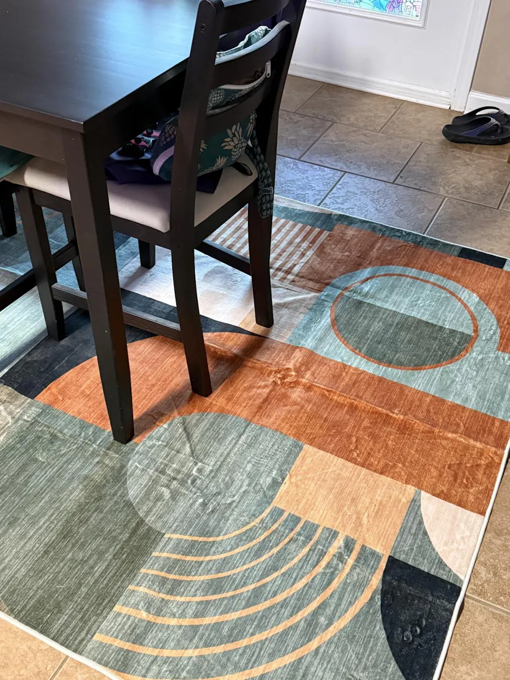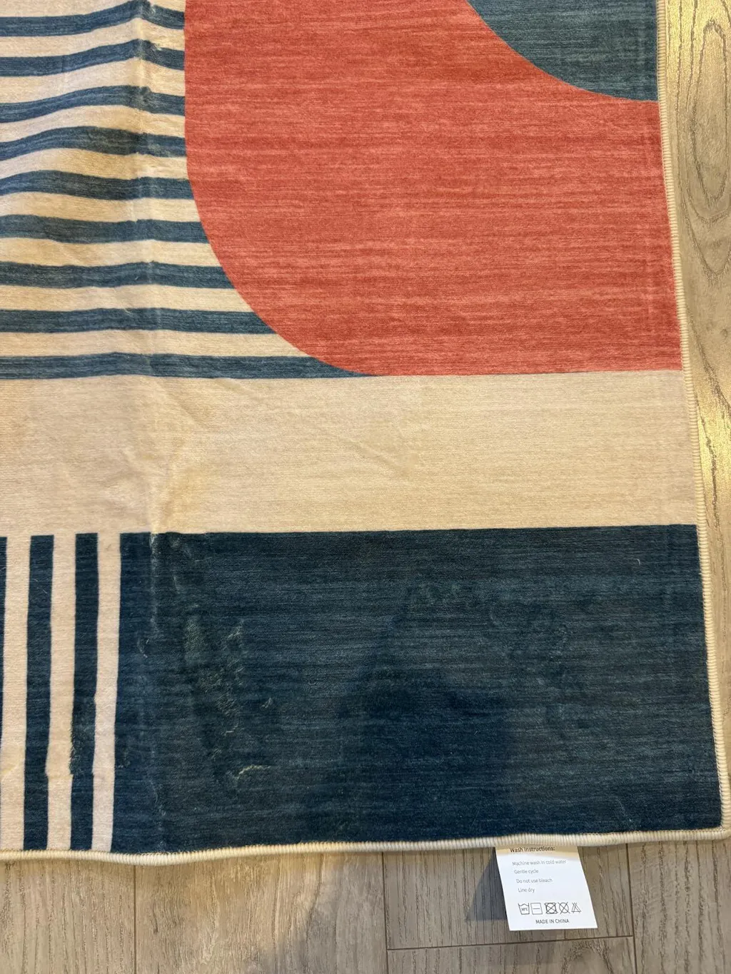 This is a nice rug option. I love that it’s washable since I have dogs and regular rugs always seem to get gross after a while even with shampooing. The design is fun and the colors aren’t washed out and faded like you see with a lot of washable rug options. This is a low pile option and so far my robot vacuum plays nice with it, which is a huge plus for me. I think $49.99 is a fair price since this is a nice quality item. I haven’t had any stray threads or weird seams and I’d definitely recommend it if you like the design.