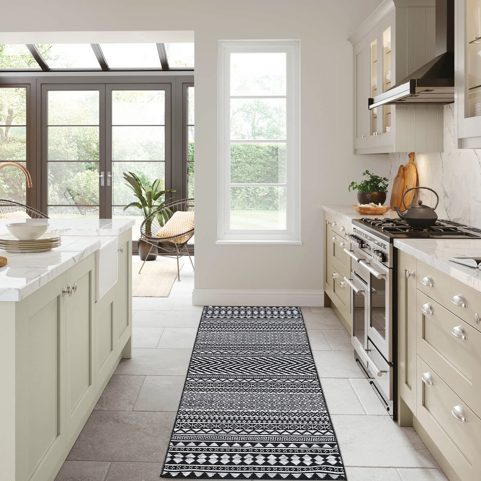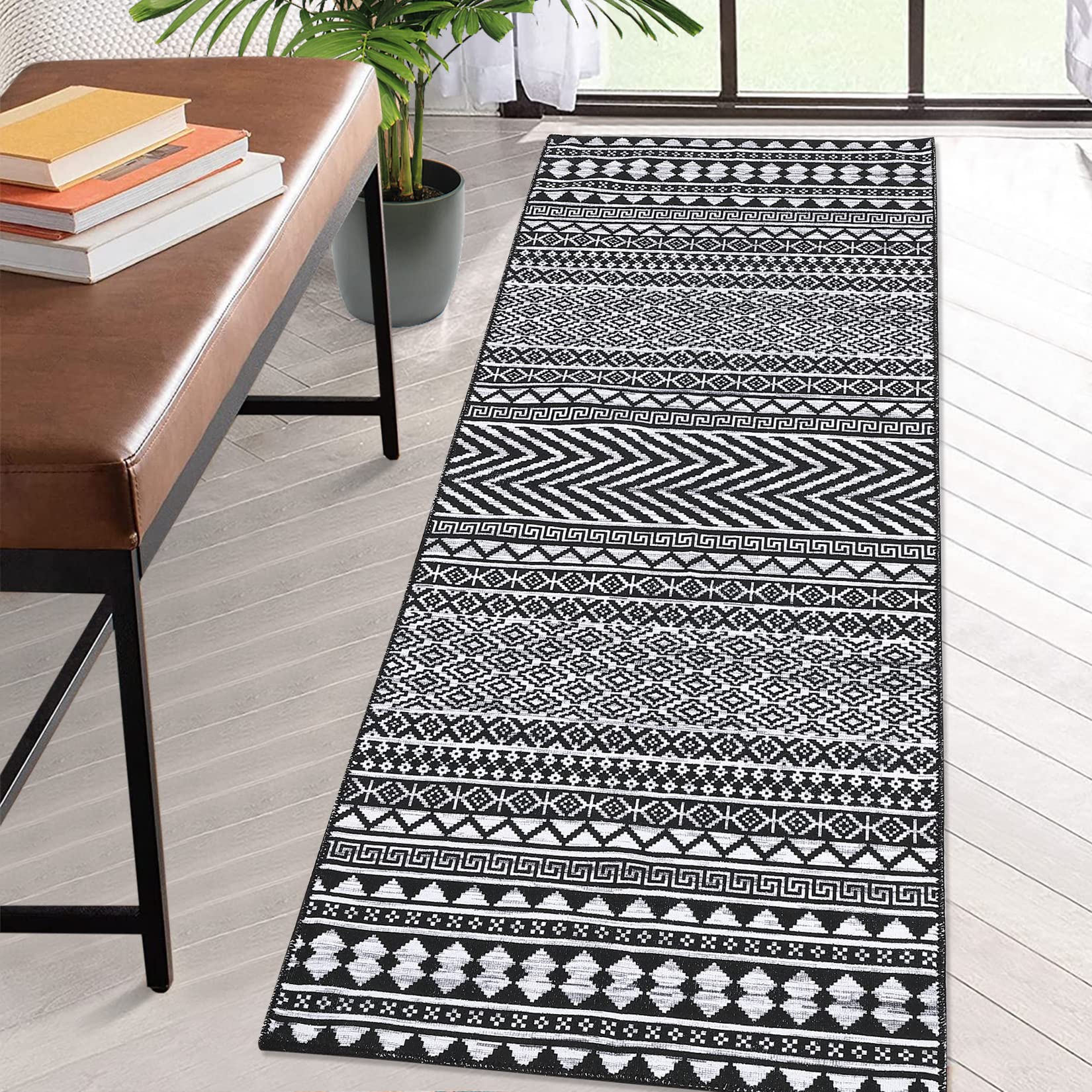Garvee Rug Runner for Hallway Moroccan Rug Non-Shedding Large Carpet Oriental Distressed Antique Long Rug for Bathroom Living Room 2 x 8 Kitchen Runner Rug Long Mat, Black Distressed