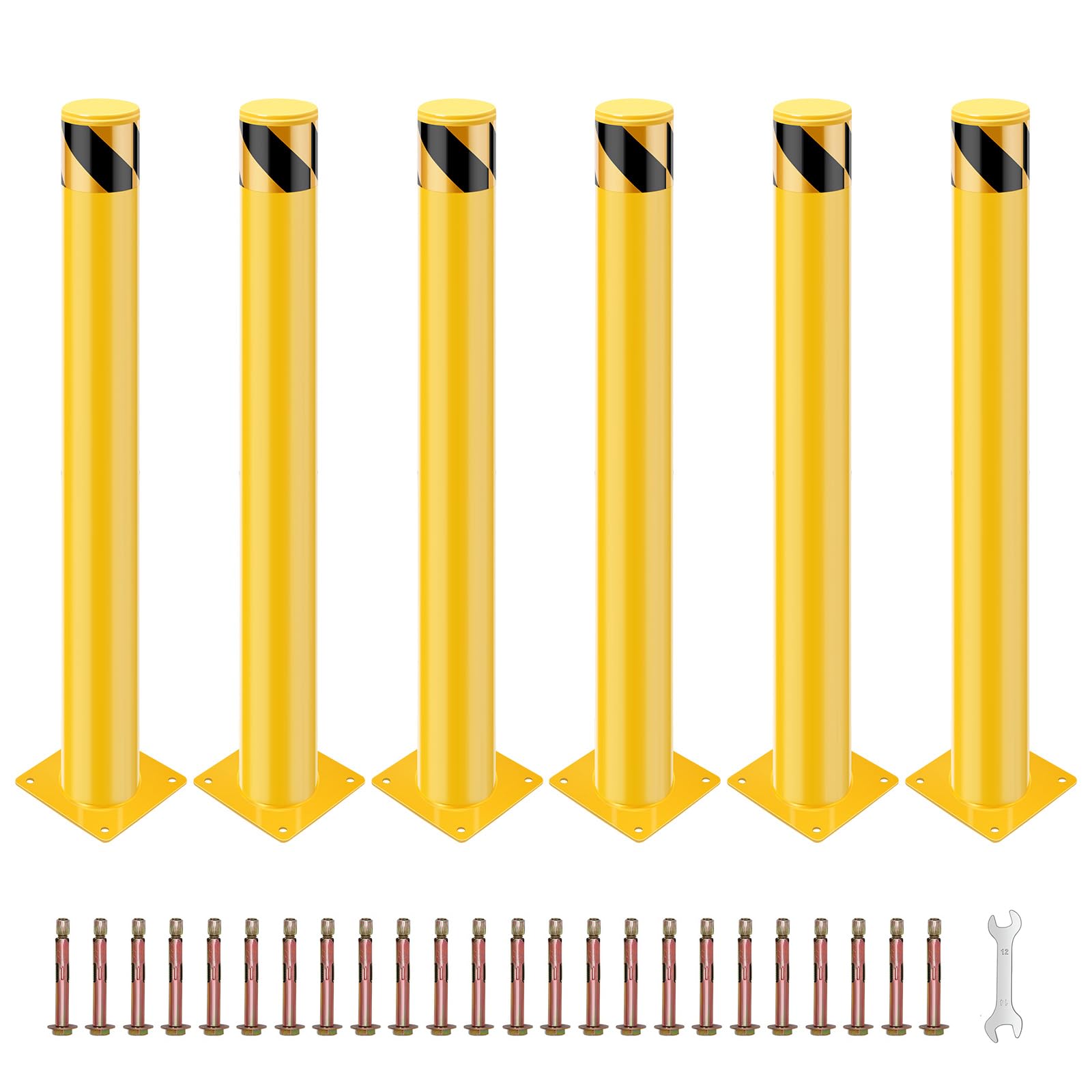Garvee Bollard Post 42 inch, Safety Bollard Post in Ground, Removable Steel Bolt Down Parking Bollards, Yellow - 6PACK