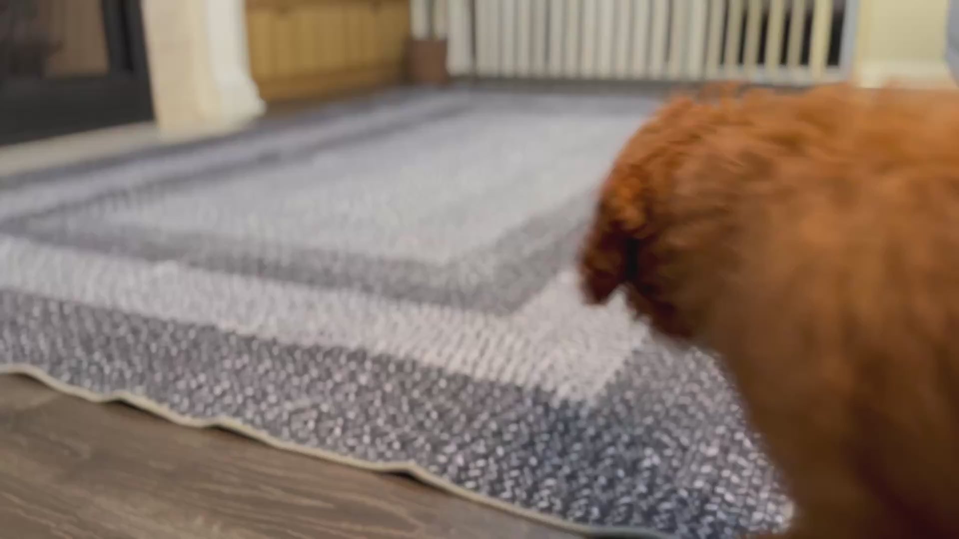 I was expecting this to be a woven rug with that scratchy, wooly feel to it. Not even close! I’m not sure if “printed” is the right word, but this is not woven at all. The pattern is actually colored on to the rug. It is extremely soft and about half as thick as it looks. We have had this down for over a week and it has not moved. It stays in place with a lot of traffic on it. All I can say was this was a very pleasant surprise! 5 stars!