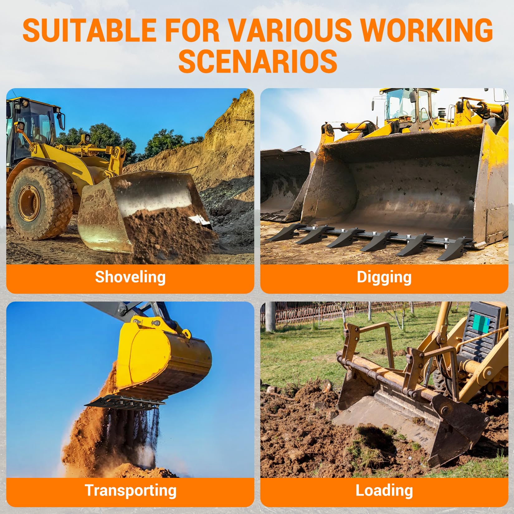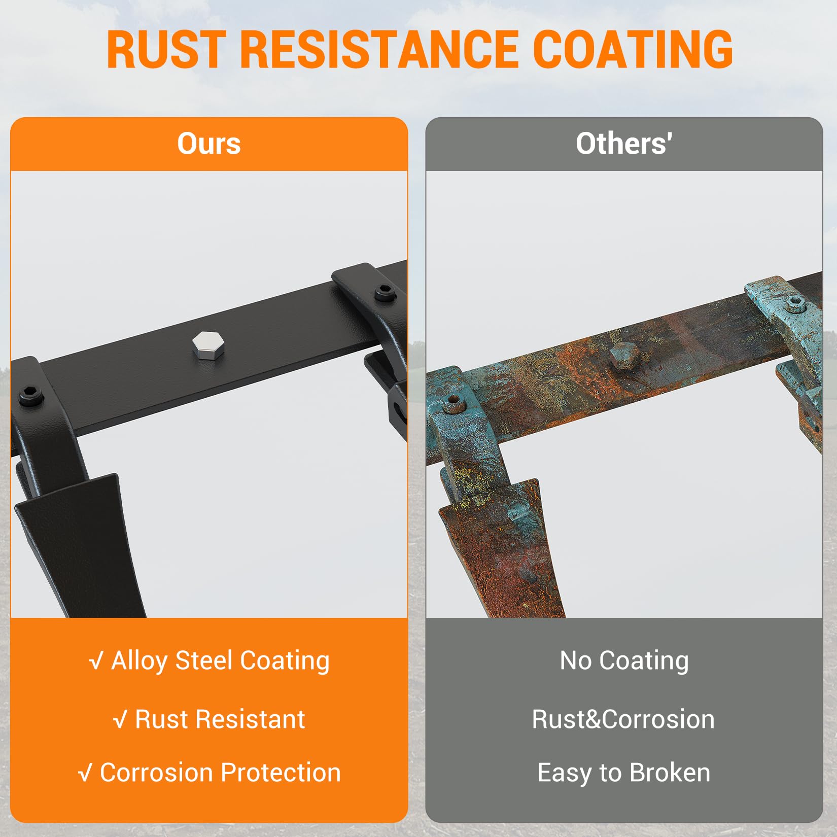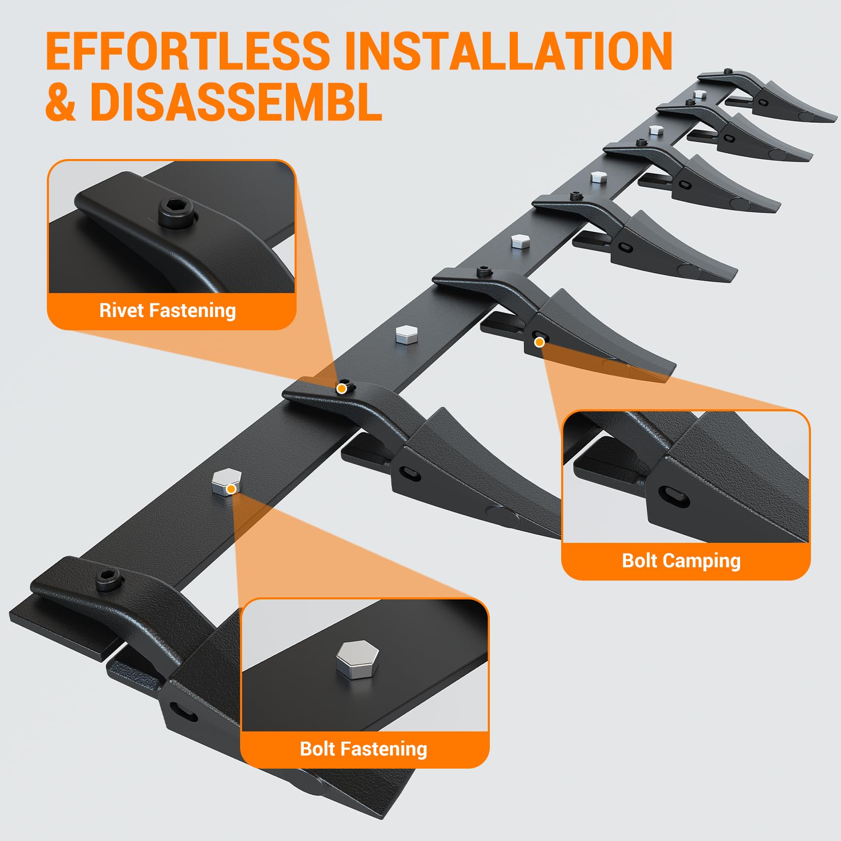 Garvee 72" Heavy Duty Steel Bucket Tooth Bar for Tractor & Loader Buckets – Replaceable Teeth, Black Protective Coating