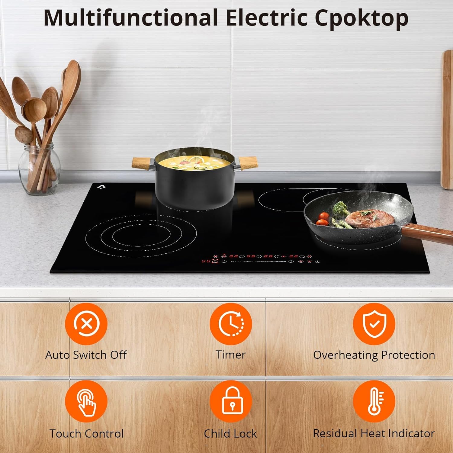 Garvee Burner Electric Cooktop - 35.4" 8800W/240V, Ceramic Glass Radiant Electric Stovetop Built-In Stove Top, Ceramic Glass Radiant Stovetop, Timer, Kid Safety Lock, BLACK