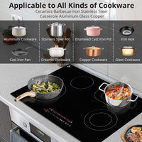 - 【VERSATILE AND COMPATIBLE】Suitable for 220-240V hard wire installations, this cooktop stove is compatible with a wide range of cookware, including pots and pans of all materials. Ideal for various cooking methods such as boiling, frying, and simmering.