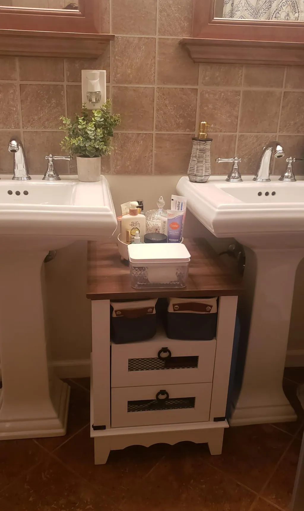 - [Farmhouse Modern Style]This farmhouse side table showcases a charming brown-and-white color, blending modern and rustic elements seamlessly, creating a versatile piece that pairs well with various furniture styles. With a unique wave design for added elegance and two drawers featuring iron mesh detailing for a touch of sophistication, this table enhances the aesthetic appeal of any room. Ideal for effortless integration into your home.