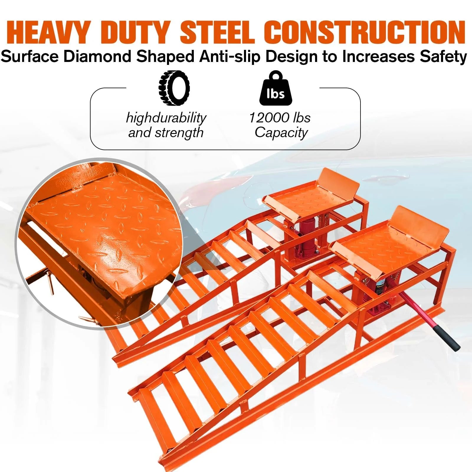 Garvee Car Truck Service Ramps, Heavy Duty Truck Vehicle Lift Ramps, 2 Pack 12000LBS Load Capatity Portable Car Ramps for Oil Changes,Car Lifts for Home Garage,Vehicle Auto Garage Repair (Orange)