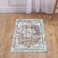 Garvee Area Rug Vintage Rug 4x6 Oriental Floral Print Floor Mat for Living Room Bedroom Machine Washable Low Pile Carpet Non-Slip Foldable Floor Carpet for Nursery Dorm Home Office, Rust