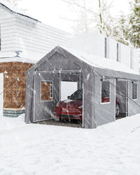 Garvee 10' X 20' Heavy Duty Car Shelter with Roll-Up Doors & Windows, Height Adjustable, for Car & Boat, Grey