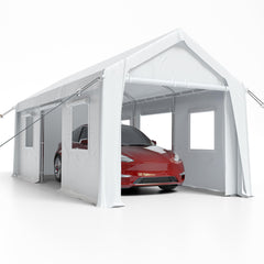 - HEAVY DUTY CARPORT CONSTRUCTION - Thick galvanized steel frame, sturdy, stable, and not easy to rust. Thick PE top cover and sidewall, tough, waterproof, and UV resistant.