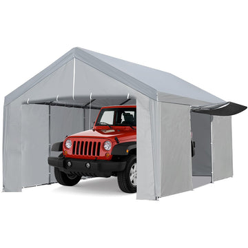 Garvee 10'x20' Heavy Duty Carport, Portable Garage Storage Shed with Removable Sidewalls & Doors for SUV, Boats, Trucks, Grey