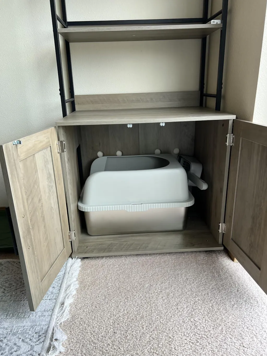 - Provides privacy for cats and reduces litter odors