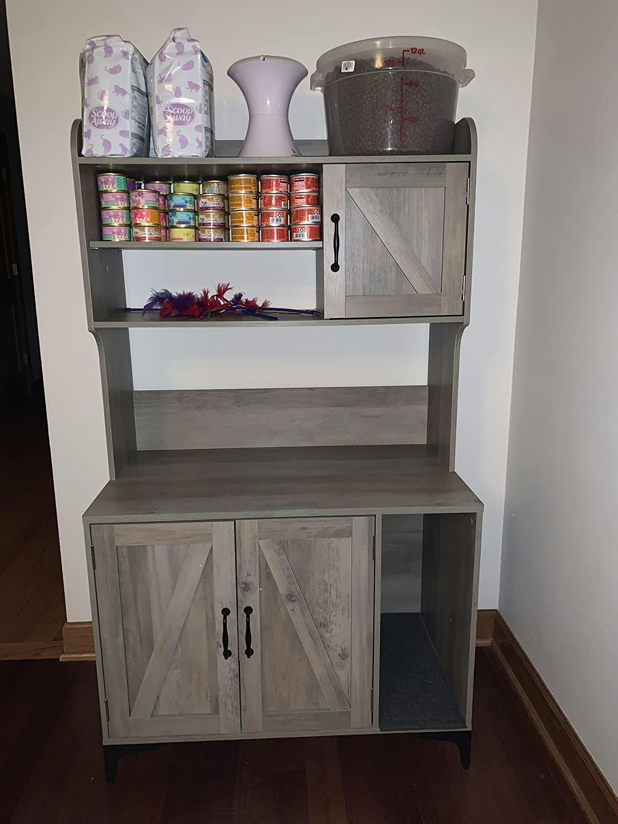 Garvee Cat Litter Box Enclosure with Shelves and Doors, Wood Sturdy Hidden Litter Box Furniture, Indoor Cat House Furniture for Most of Litter Box, Litter Box Cabinet, Grey