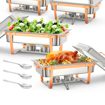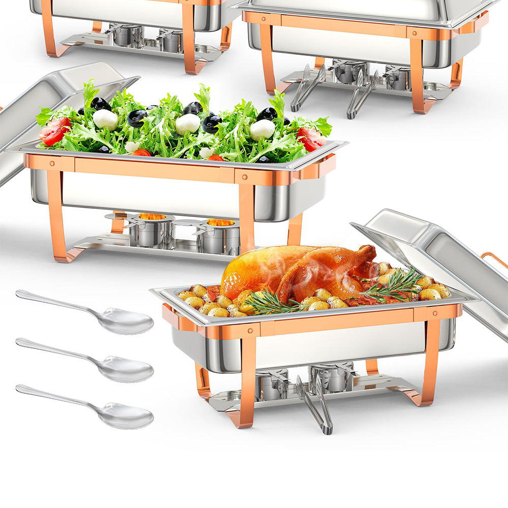 Garvee Chafing Dish for Buffet Set, 6 Packs 8 Qt Chafers and Buffet Warmers Sets with Folding Frame, Spoon & Tweezer for Weddings Parties Banquets Catering Events, Rose Gold