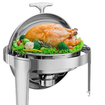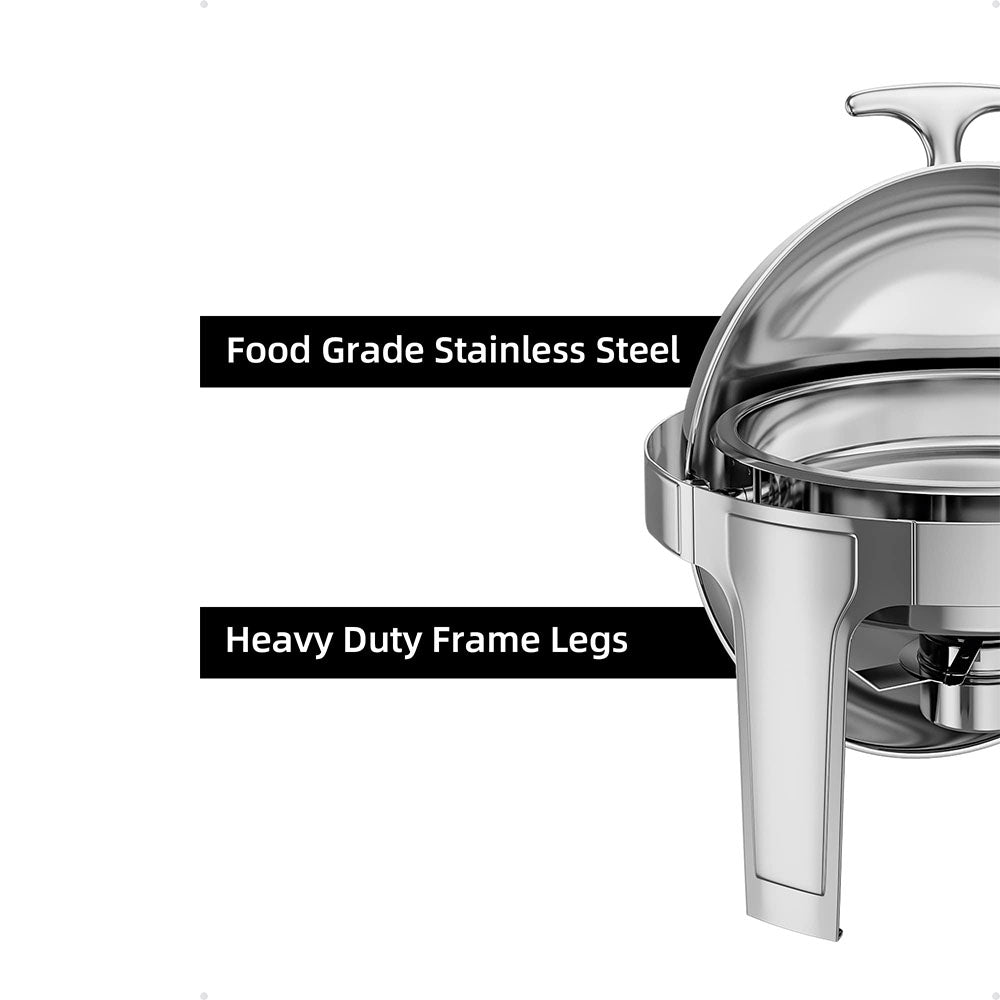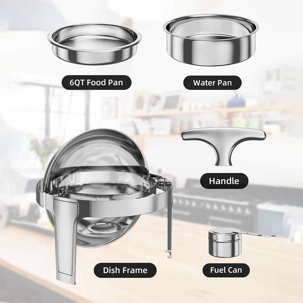 Garvee 6QT Roll Top Chafing Dish Buffet Set,Full Size Stainless Steel Pan Chafer, Round Catering Warmer Server, for Wedding, Parties, Banquet, Catering Event,1 Pack