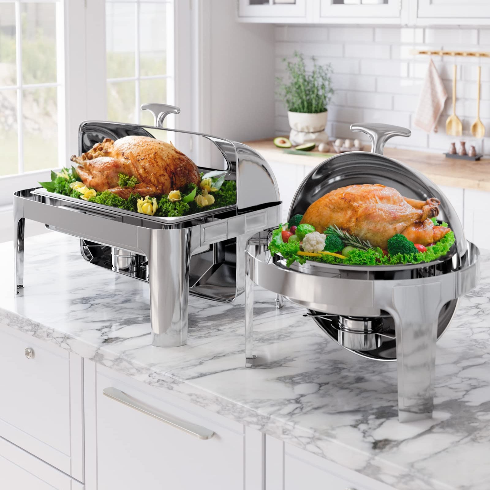 Stainless Steel Roll Top Chafing Dish Buffet Set