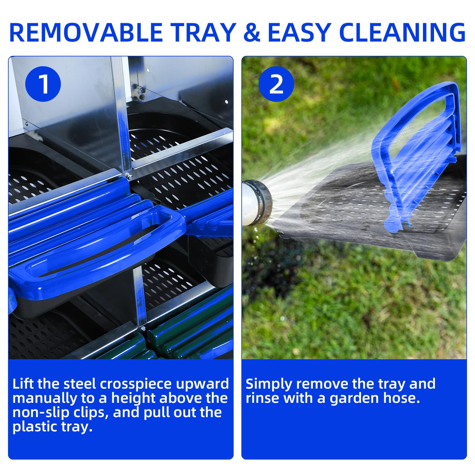 - SUPERIOR VENTILATION: Made with galvanized steel on the sides and roof, this nesting box is built to last. The integrated ventilation holes ensure excellent airflow, keeping the box cool and dry. Additionally, the rust-resistant plastic tray is easy to clean, contributing to the box’s durability and hygiene.