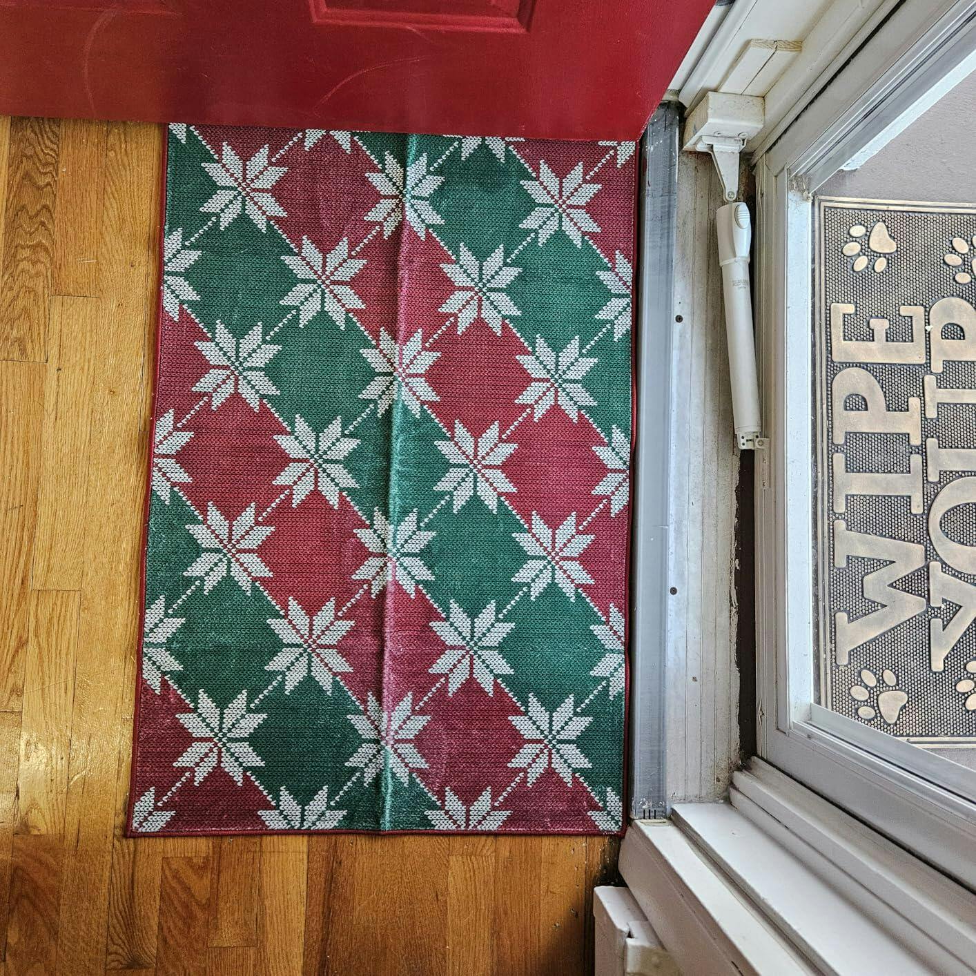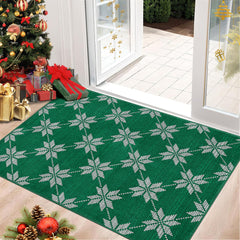 Garvee Christmas 4x6 Entrance Rug Machine Washable Hallway Area Rugs Low Pile Carpet Indoor Door Mat Red/Green Snowflake Rug for Bedroom Kitchen