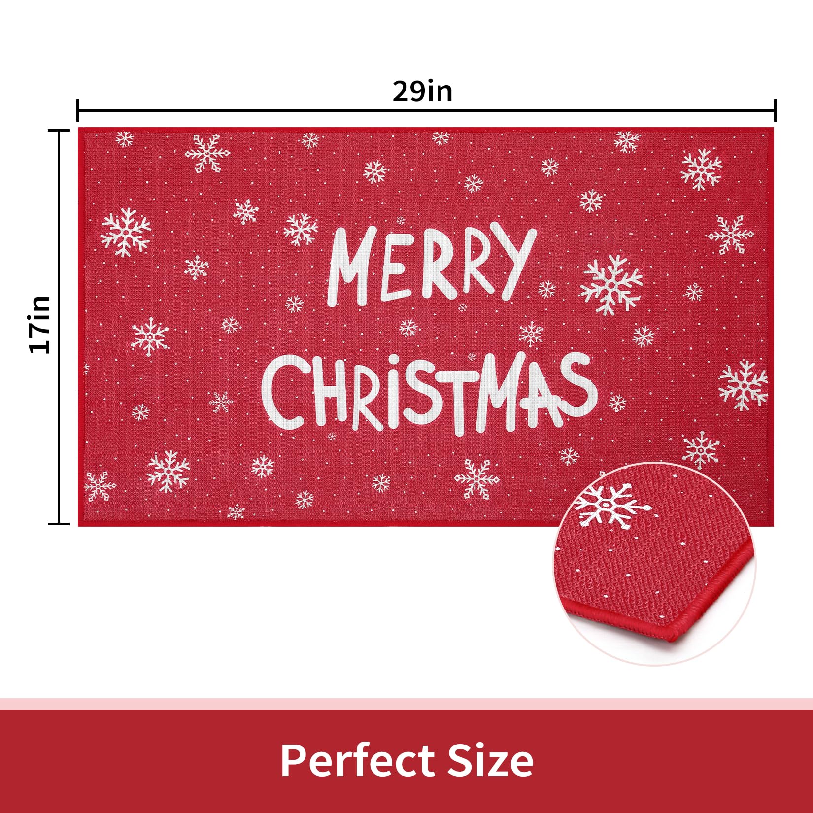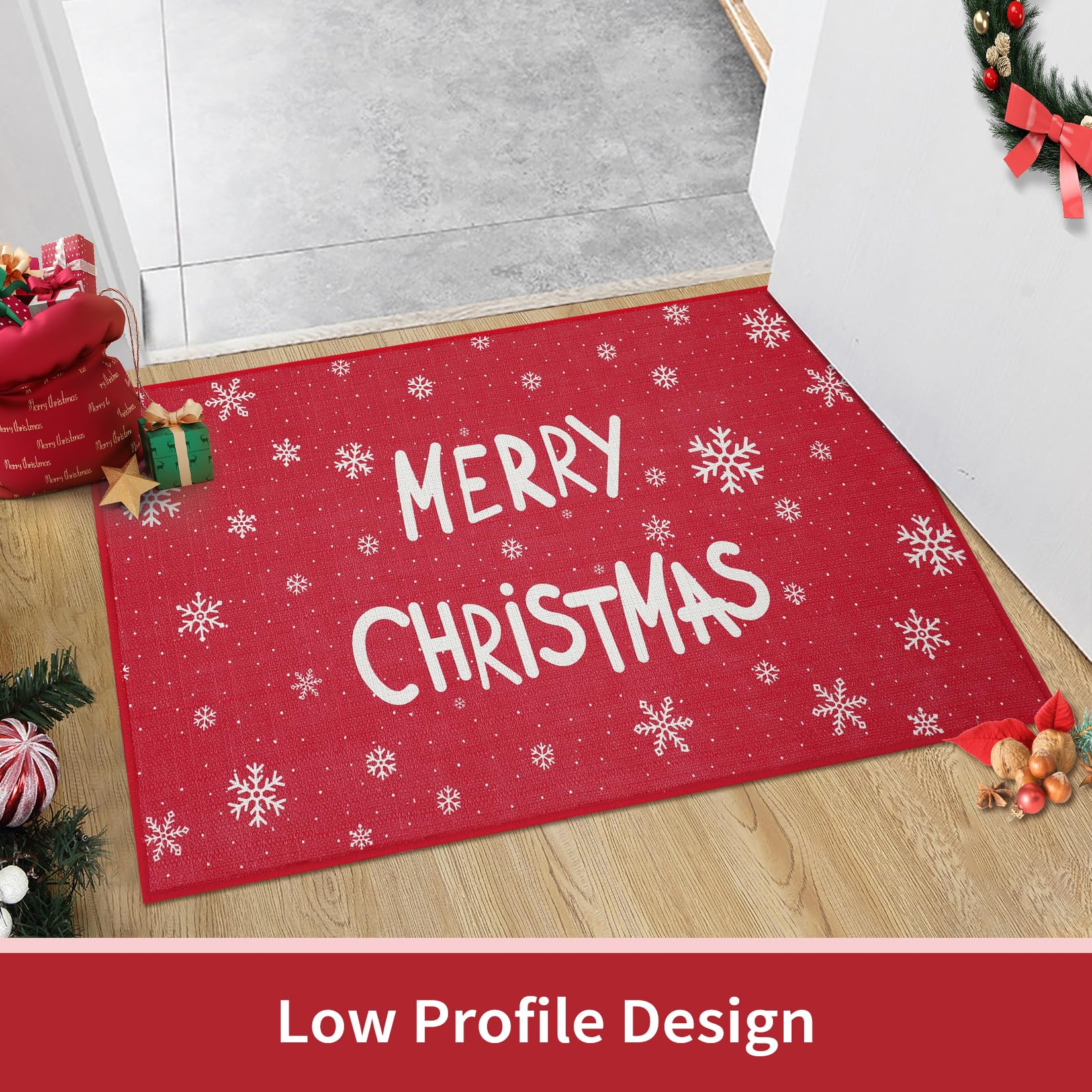 Garvee Christmas Doormat Indoor Outdoor Entry Doormats Front Door Decoration Mat Non-Slip Absorbent Entry Door Rugs, Red, 17" x 29"