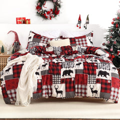 Garvee Christmas Duvet Cover Queen, Soft Brushed Microfiber Comforter Cover Sets, Reindeer Printed Holiday Theme Bedroom Decorative Bedding (Queen Size, Christmas Plaid Deer)