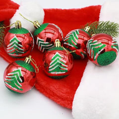 Garvee Christmas Hanging Ornaments, 6pcs Pre-Strung Plastic Balls, Shatterproof Xmas Balls Decoration for Christmas Tree, Painting & Glittering Christmas Hanging Ball for Party Event