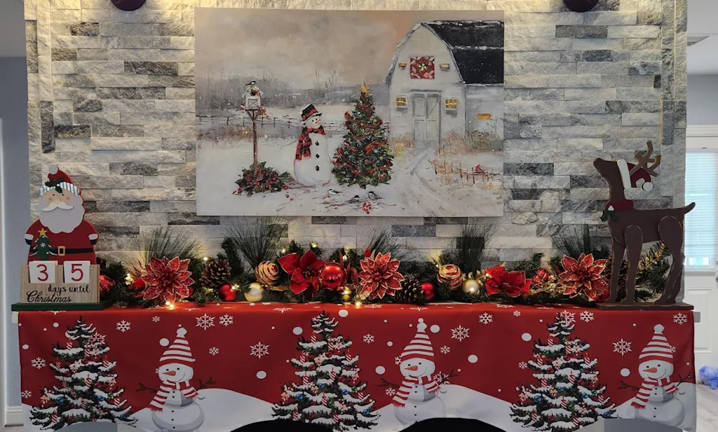 Transform your holiday space with our beautifully crafted Christmas garland. Featuring a stunning combination of red and gold ornaments with warm LED lights, it's the perfect addition to create a magical holiday atmosphere.