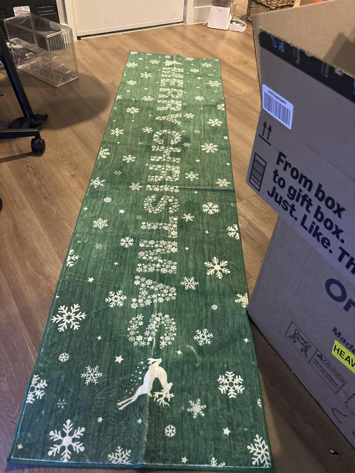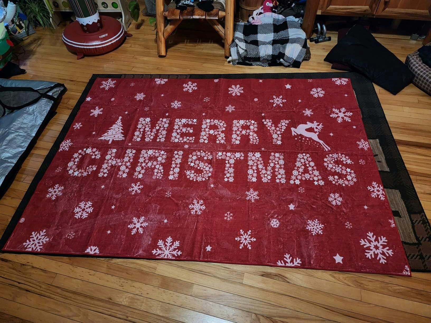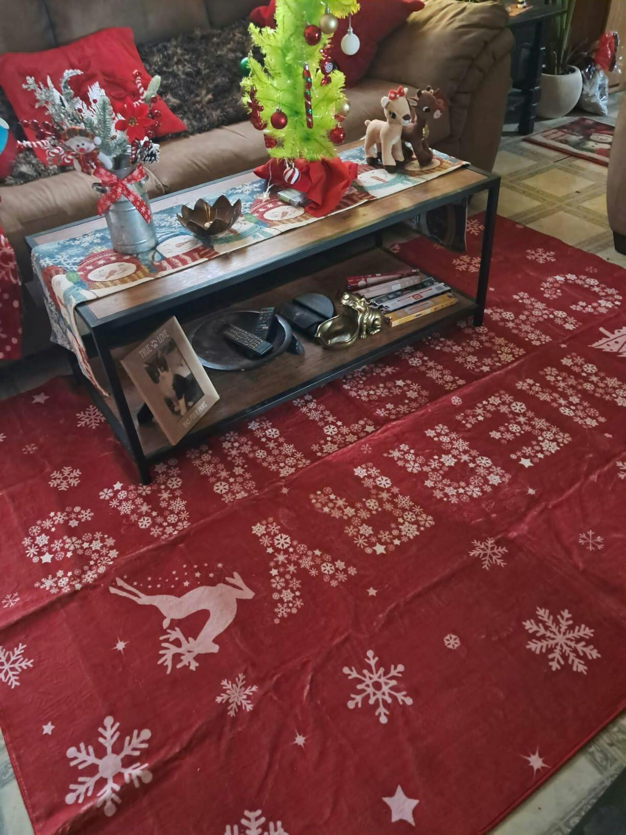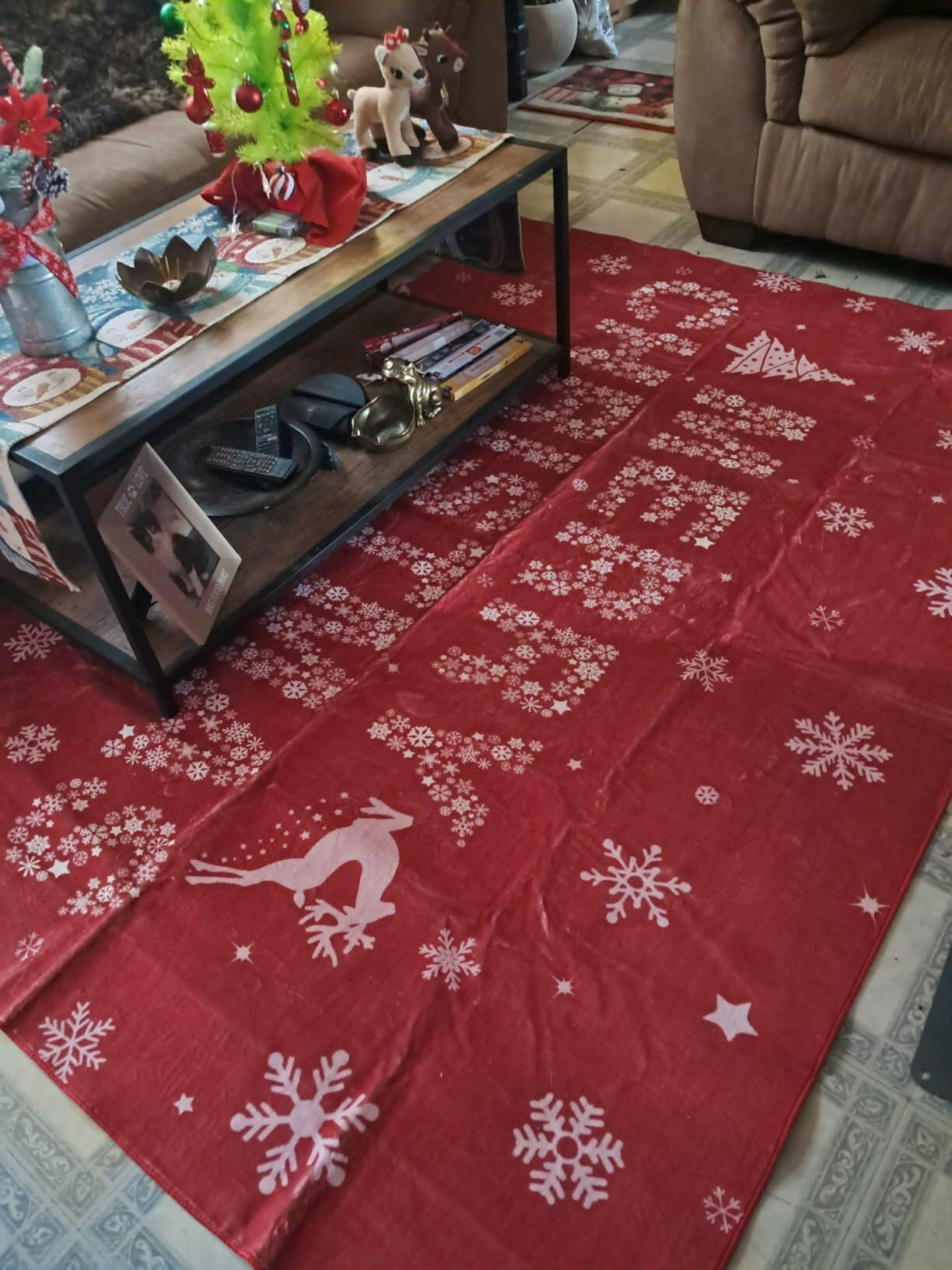 This Christmas Rug exceeded my expectations. Its vibrant, super soft and so easy to clean. My son who has texture sensitivity enjoys sitting on it and its quickly become his favorite thing. I LOVE having warm feet when Im in my kitchen and this rug is long enough to cover the area in front of my sink and to my sliding door. No more freezing toes as I'm cleaning (or dancing!) in my kitchen!