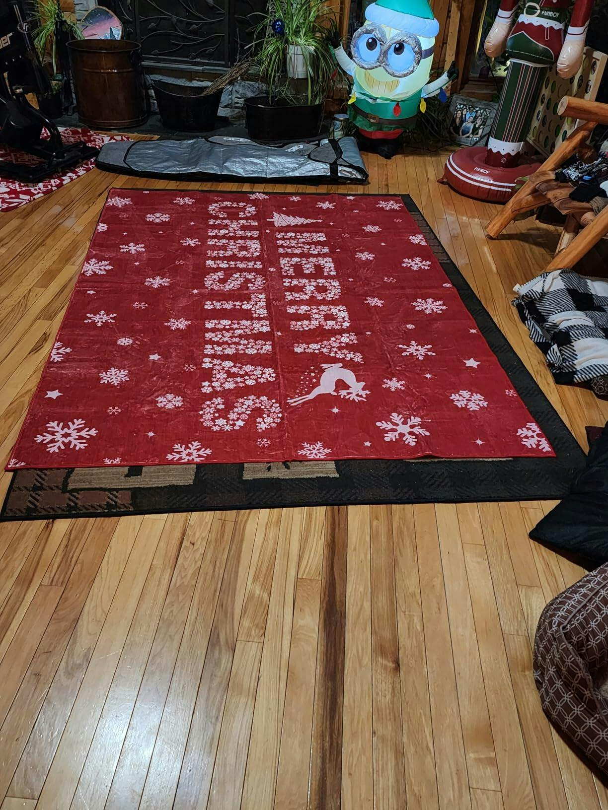 What a beautiful large, soft, easy to clean, rug this is. It is a wow feature in my house right now and makes the Christmas decoration even more engaging. It feels so nice when you walk on it and it isn't too thick. There are plenty of ways to clean the rug and the important thing is, it is machine washable. It has non skid on the bottom keeping it right where I want it. Definitely one of my biggest highlight Christmas decorations. I love this and would buy another one in a heartbeat. Exactly what I hoped it would look like.