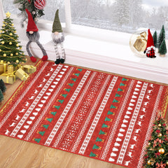 Garvee Bohemian Christmas Rug Machine Washable Indoor Holiday Mat Soft Skin-Friendly Pet & Baby Safe Xmas Decor