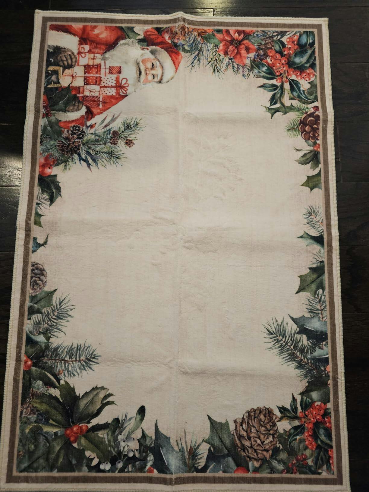 Garvee Christmas Santa Claus Area Rug 4x6 Washable Non-Slip Low Pile Non-Shedding Soft Polyester Cozy Living Room Nursery Dorm