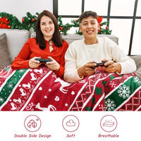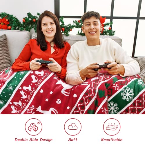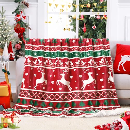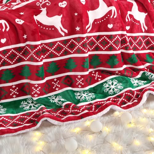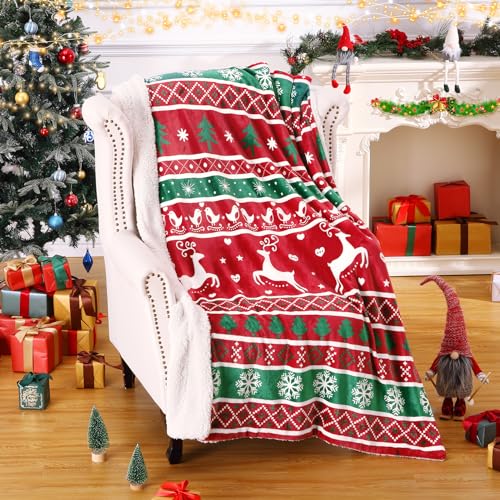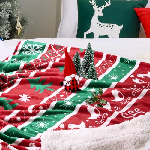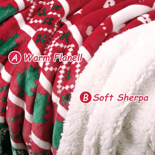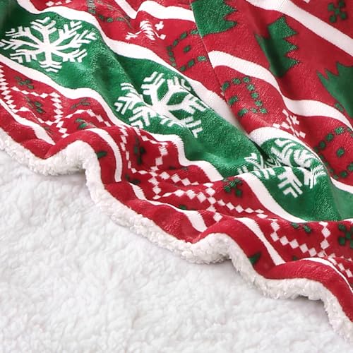 Garvee Christmas Throw Blanket for Couch Sherpa Flannel Blanket Throw for Xmas Decoration Blanket with Classical Xmas Elements Christmas Blanket for Sofa,50x60,Red and Green