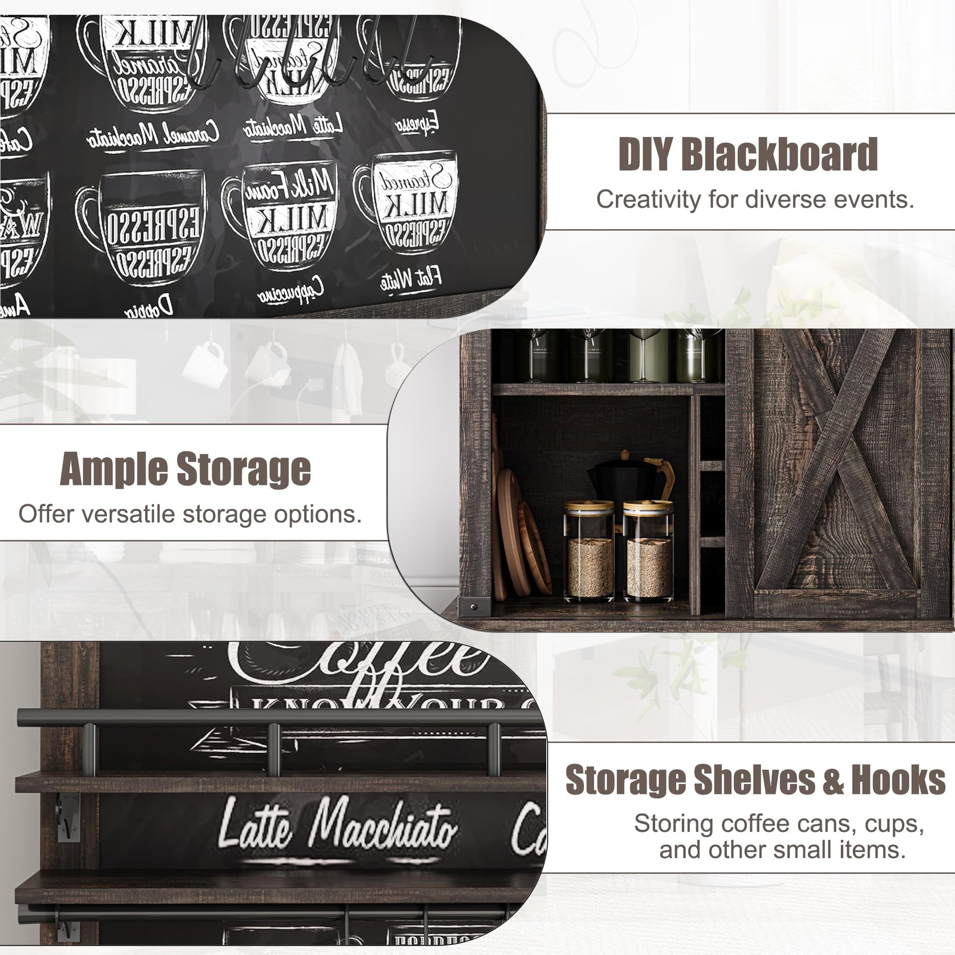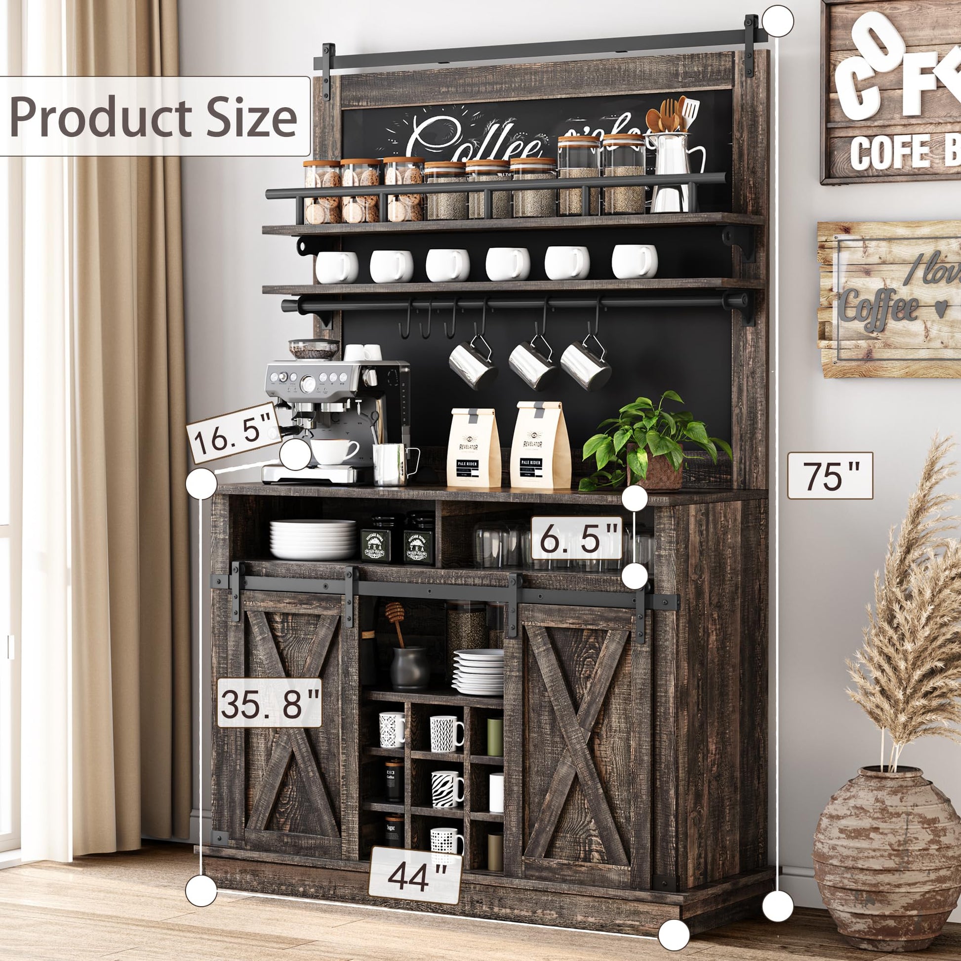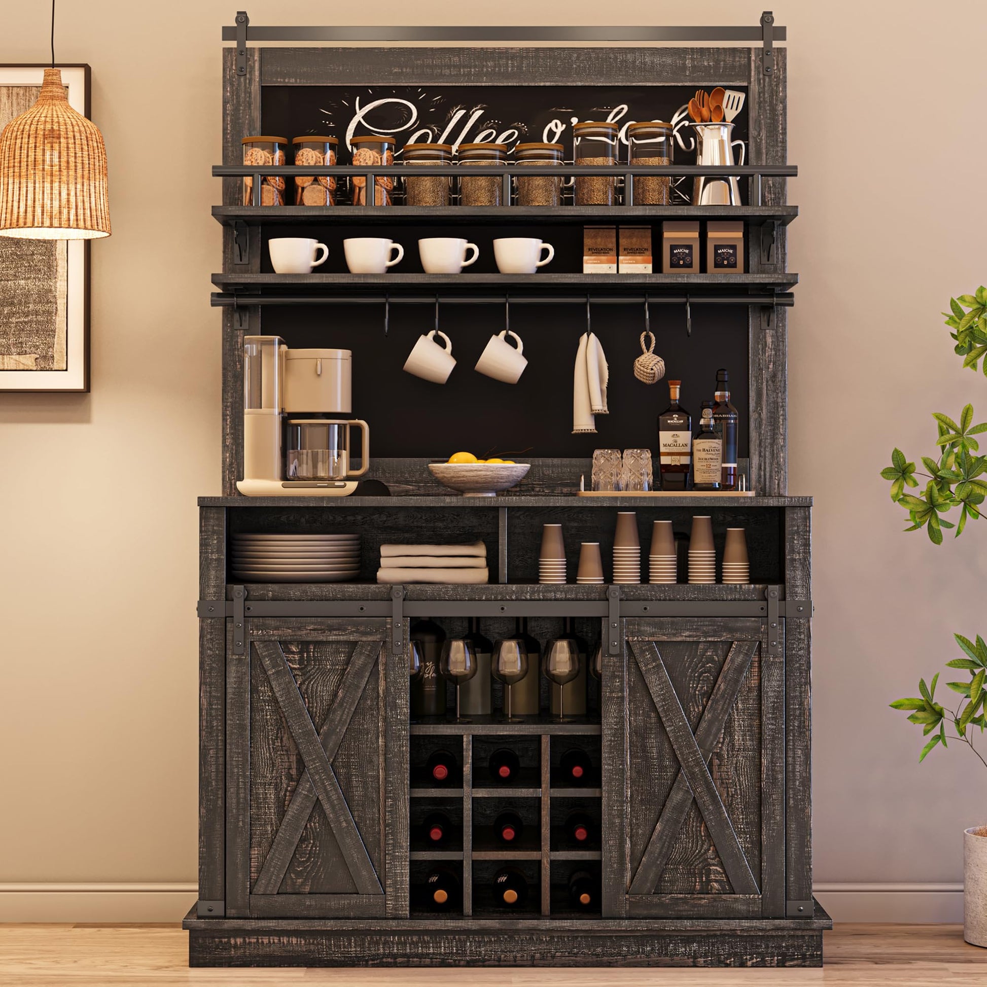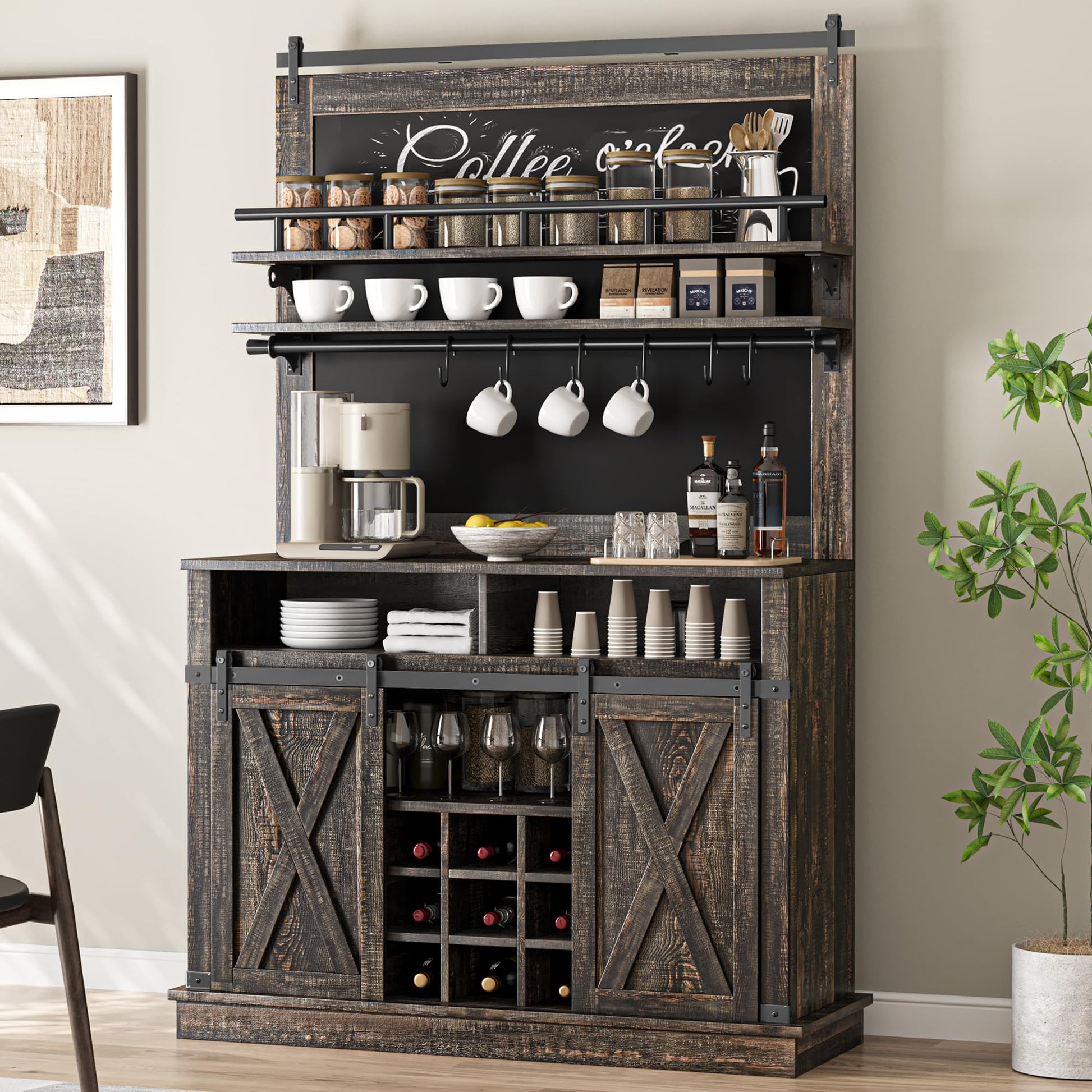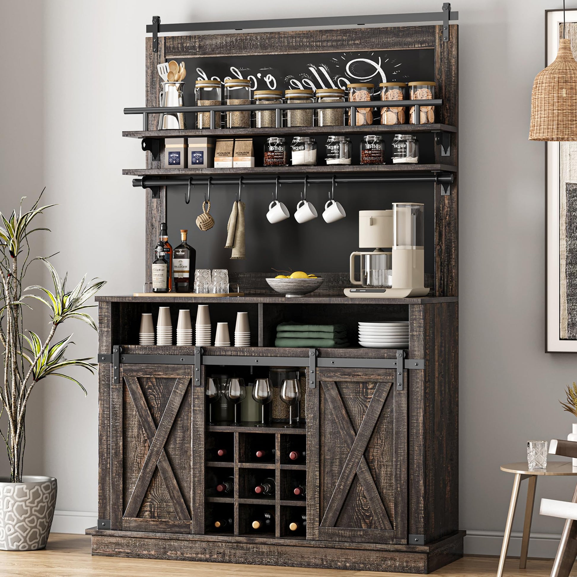 With its oak finish, sliding barn door, and DIY blackboard, the GARVEE Coffee Bar Cabinet brings a touch of farmhouse charm to any space while offering practical storage solutions for modern living.