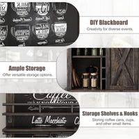 Garvee Coffee Bar Cabinet Oak Farmhouse Style with Sliding Barn Door, Blackboard, Ample Storage, MDF Wood, Dining Room