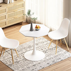 Garvee 31.50" Modern Octagonal Coffee Table With Printed White Marble Table Top Metal Base For Dining Room Kitchen Living Room White Marble