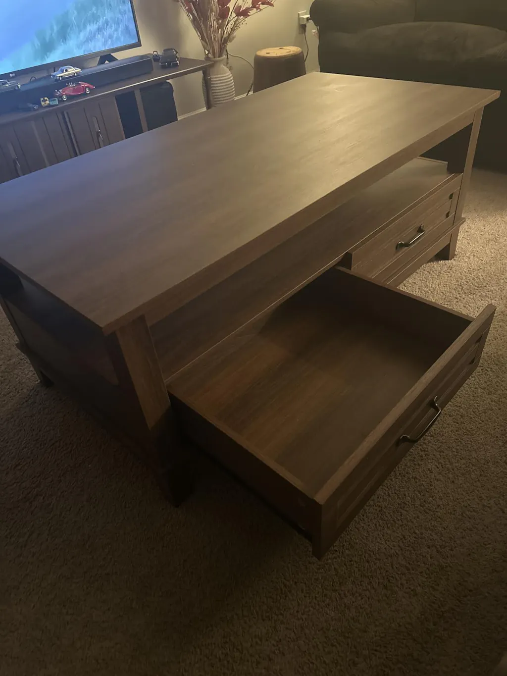 - Ample Storage Space: Features 2 drawers and a large open shelf
