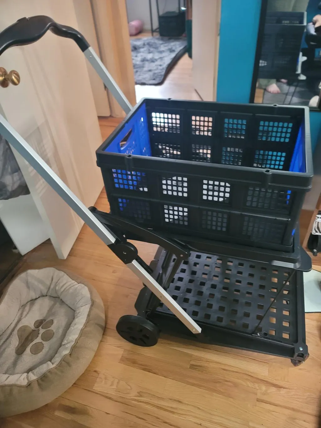 Garvee Collapsible Shopping Cart, Foldable Grocery Cart with Wheels and Removable Storage Crate, Multi Use Mobile Storage Cart Portable Rolling Cart for Home, Groceries, Supermarket