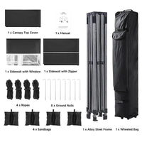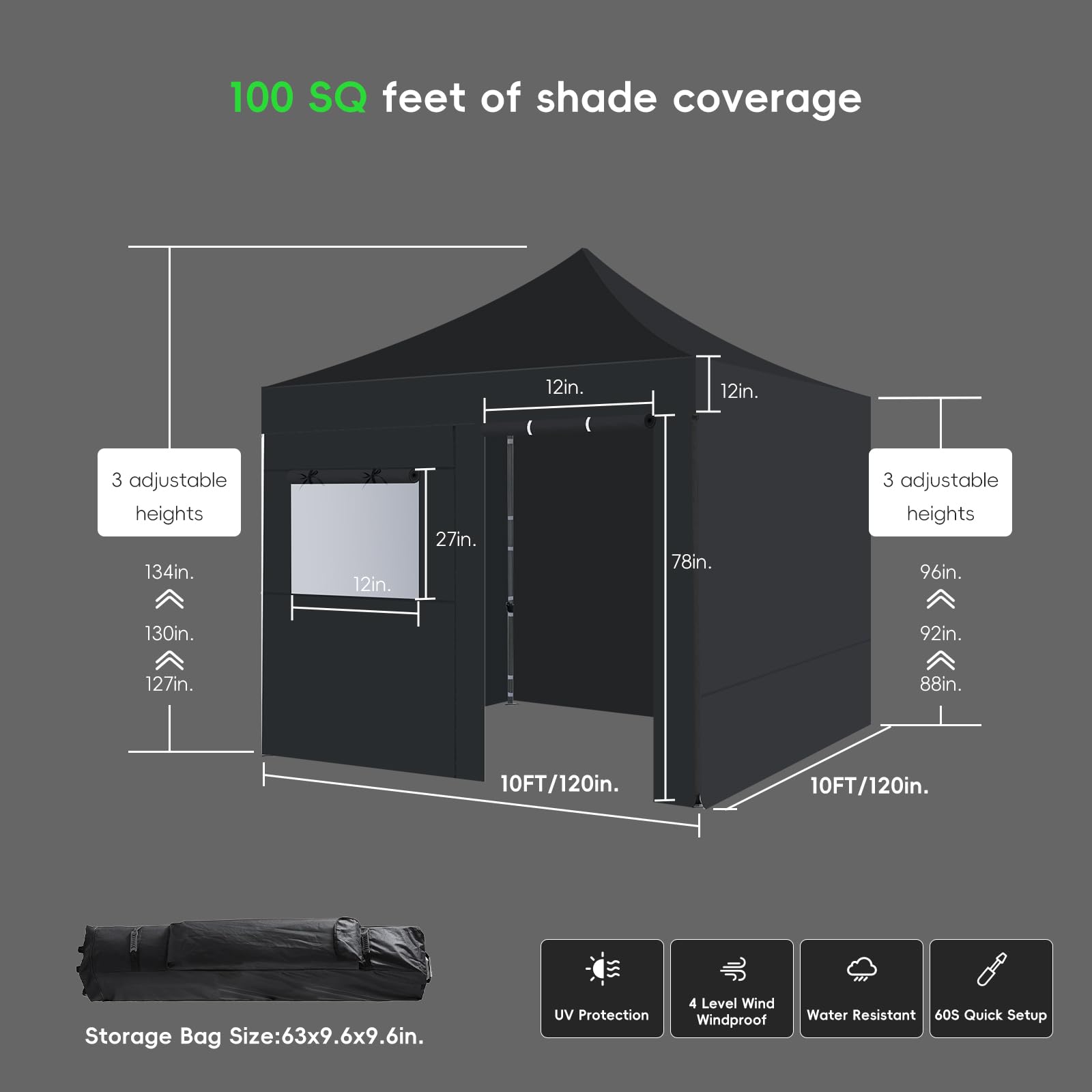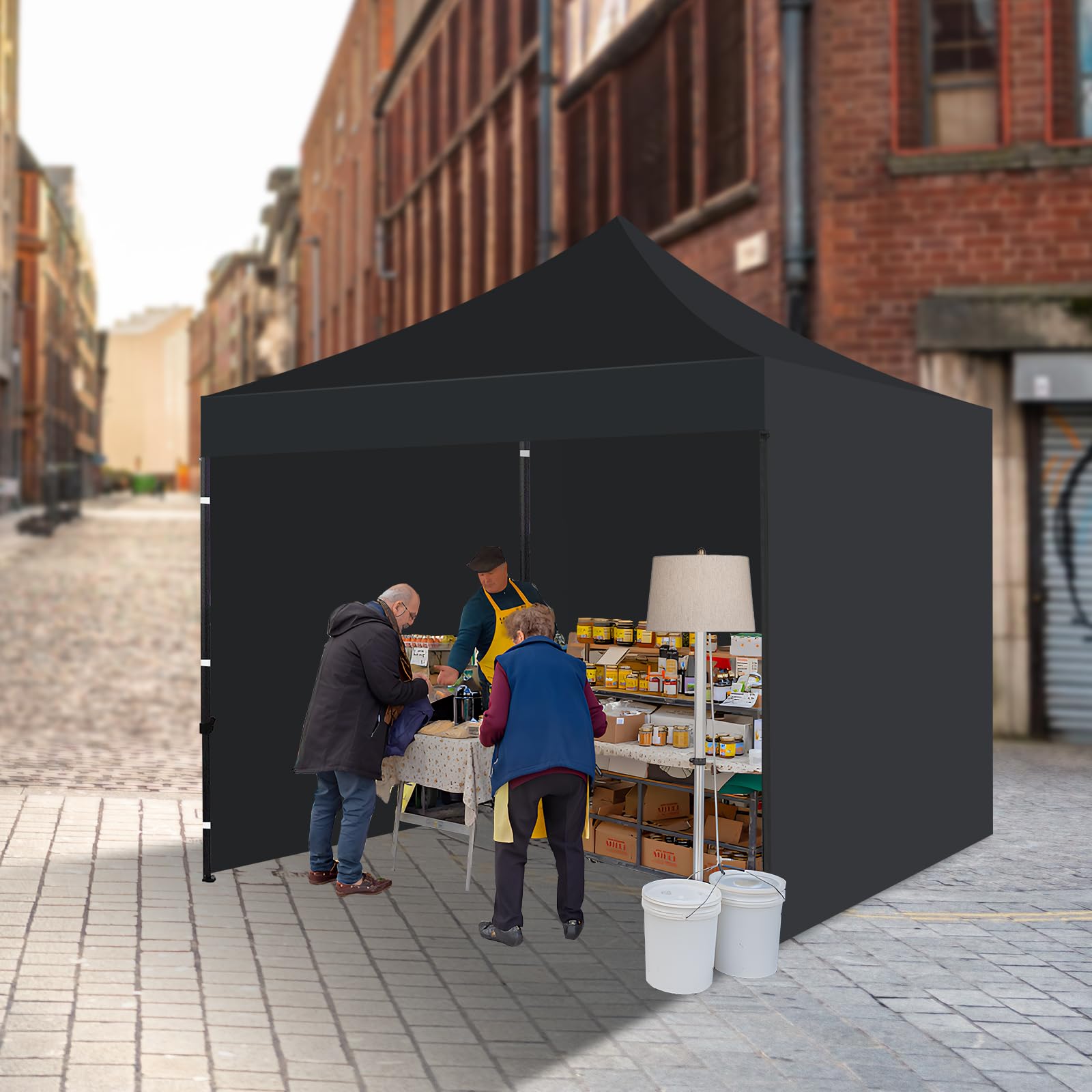 Garvee Commercial Canopy Tent with 4 Removable Sidewalls, 10x10 Pop Up Canopy Tent Heavy Duty 500D Waterproof with Roller Bag & 4 Sandbag for Outdoor/Camping/Stall/Party Event (Black)