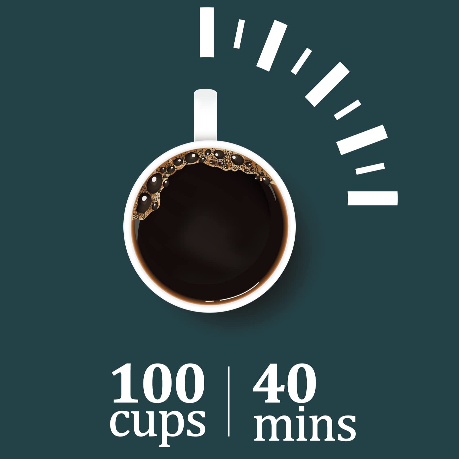 Serve fresh, hot coffee fast - complete 100-cup batch in just 40 minutes with consistent quality throughout.