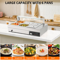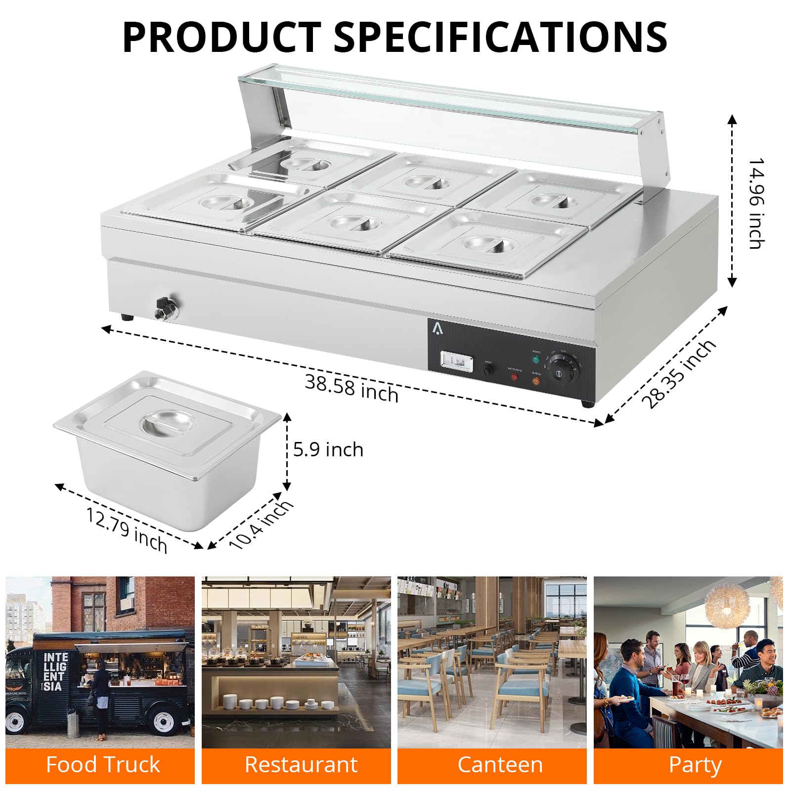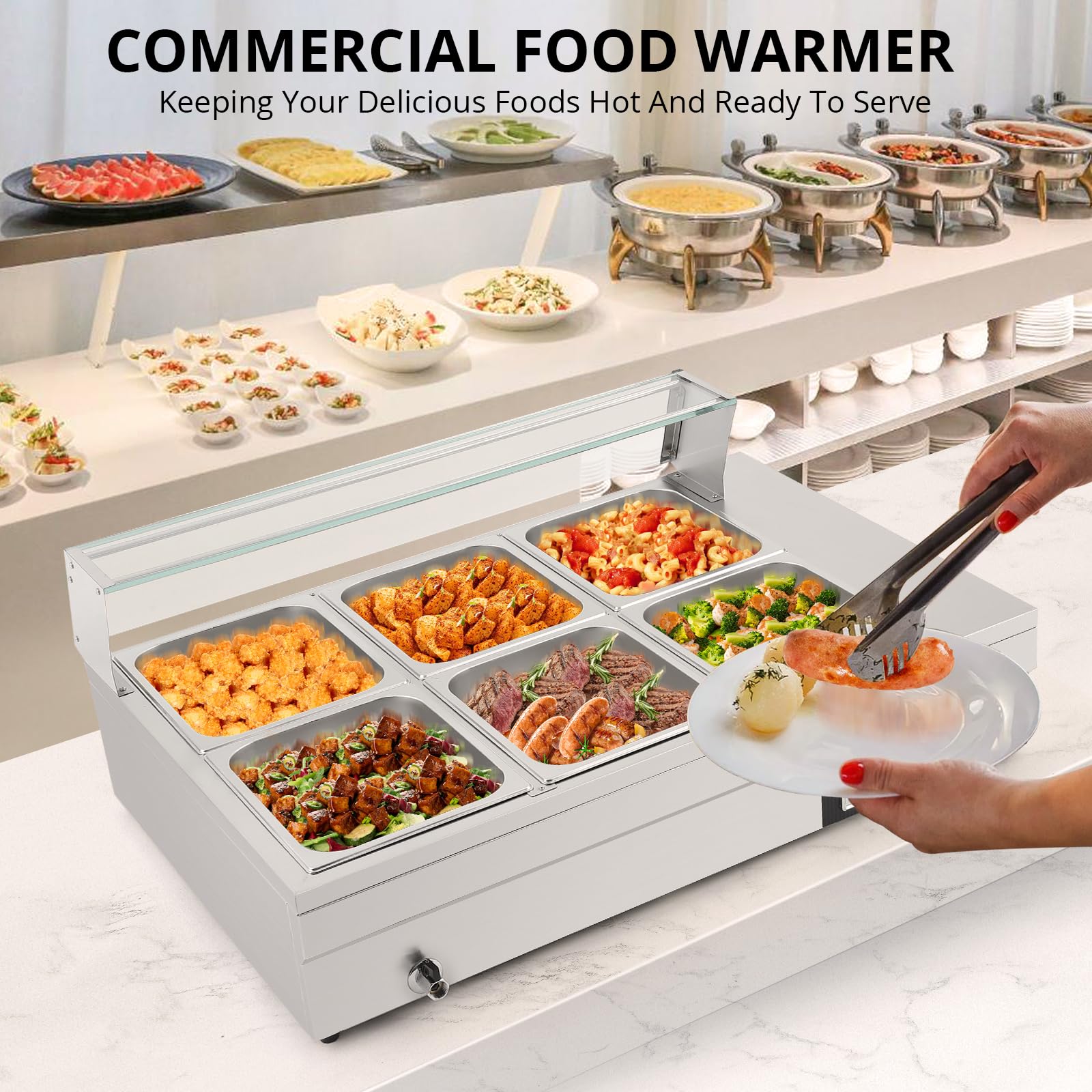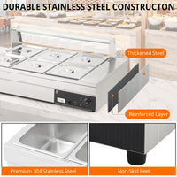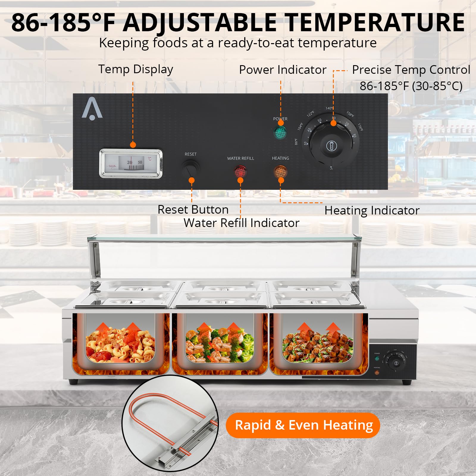 Garvee NSF Certified Commercial Buffet Food Warmer 1500W - Triple 12QT Stainless Steel Pans, Auto Safety Shutoff & Tempered Glass (86-185°F Adjustable)