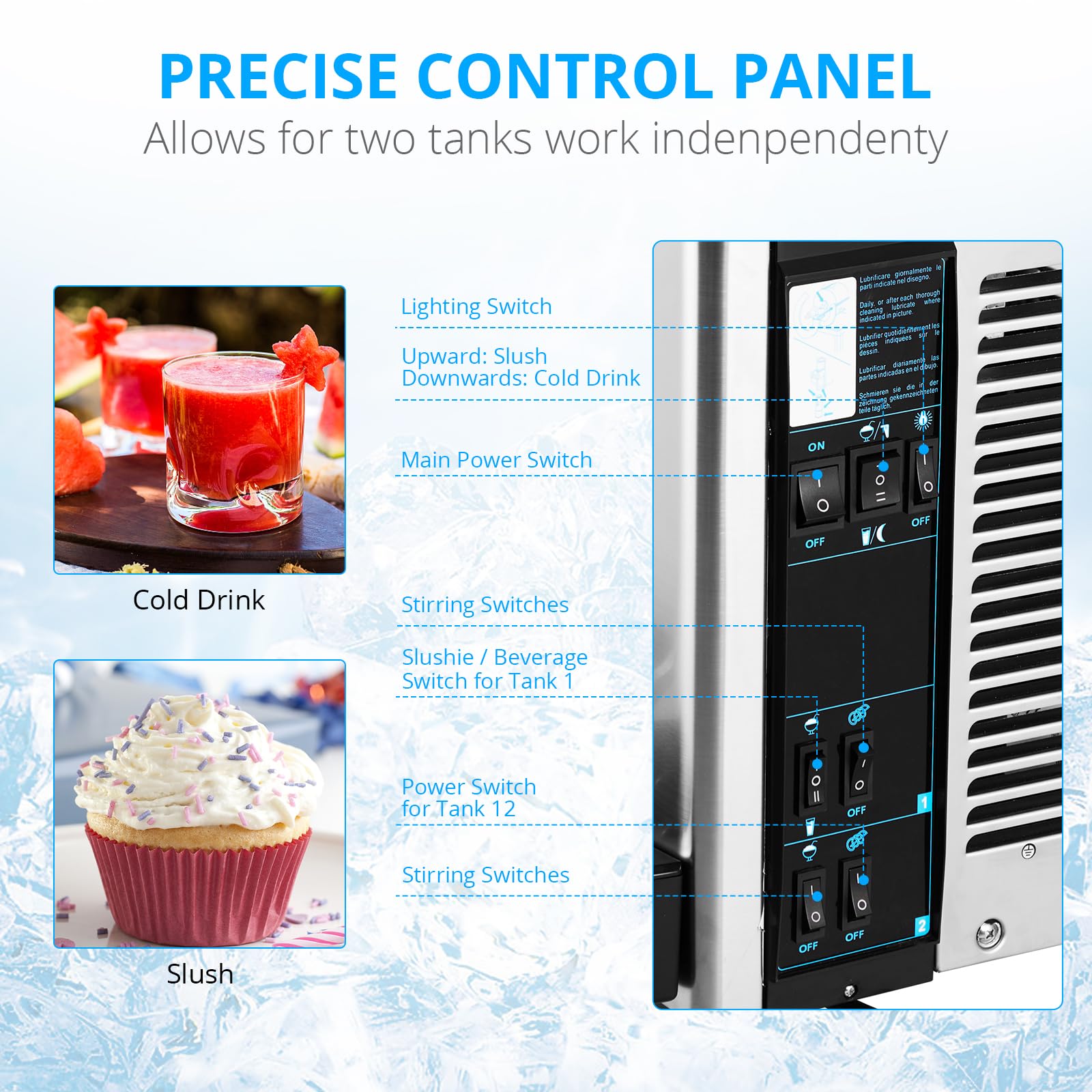 - Massive Capacity: Two 12L tanks produce up to 24L (6.43 gallons) of frozen delights, serving 100 cups per hour!