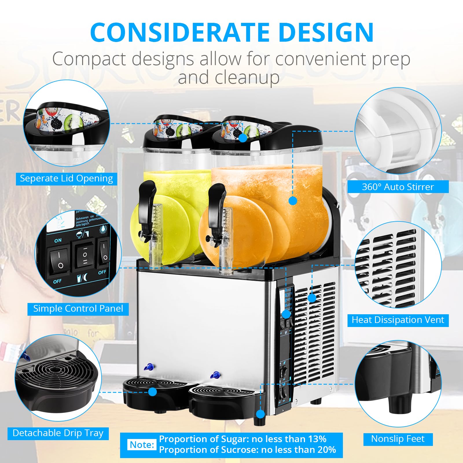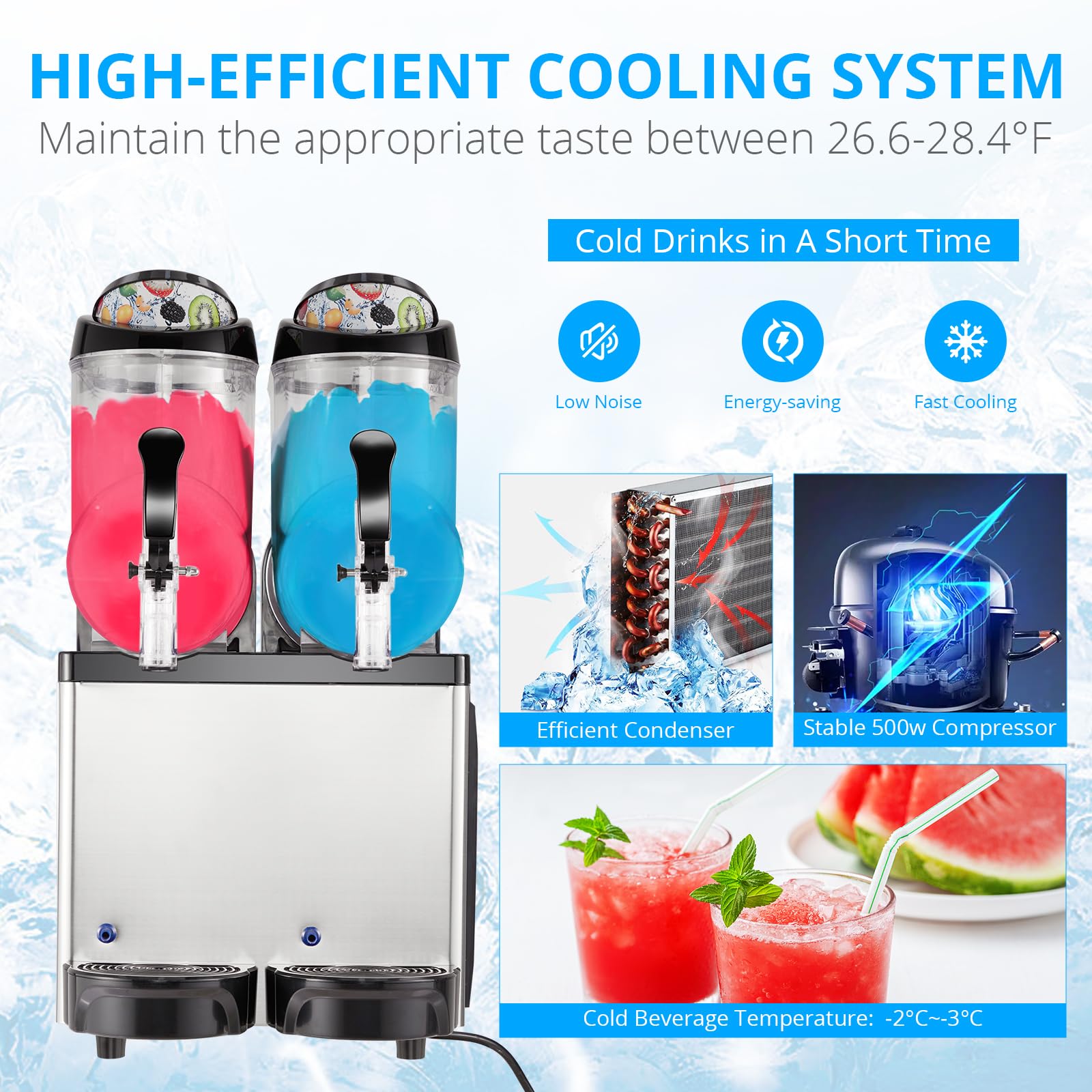 Garvee 12Lx2/6.4 Gals Commercial Slushy Machine Margarita Machine 500W Frozen Drink Machine Food-Grade PC Tanks for Restaurants Bars Pool Parties