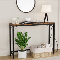 Garvee Entryway Table with Power Outlets & USB Ports, Narrow Sofa Table, Industrial Console Table, MDF & Metal, Sturdy, Anti-Scratched, 39.3", Living Room, Hallway, Bedroom