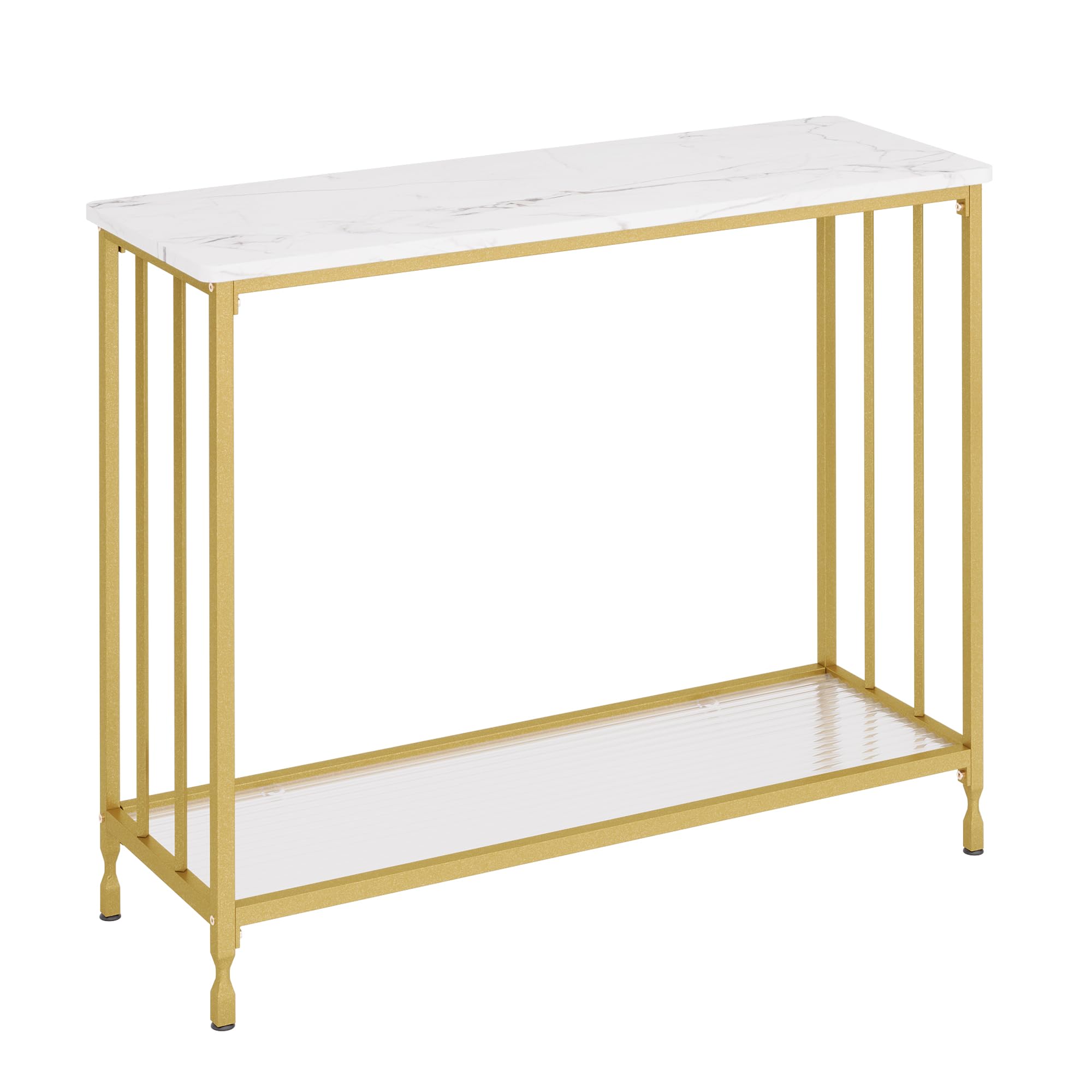 Garvee Console Table Narrow Entryway Table with Glass Shelf, Metal Frame, Fluted Glass Design, 33.5”L, Gold, Ideal for Living Room, Foyer, Bedroom