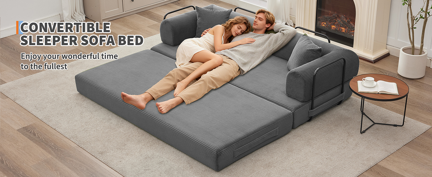 - Corduroy Sleeper Sofa with Deep Seating: Soft corduroy fabric, deep cushions, and high-density foam provide cloud-like comfort for sitting, lounging, or sleeping.