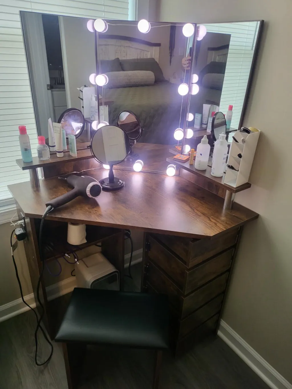 The GARVEE Corner Makeup Vanity Desk isn't just furniture - it's your personal beauty station. With its ample storage, convenient power options, and included stool, it provides an organized and inspiring environment for your daily routines.