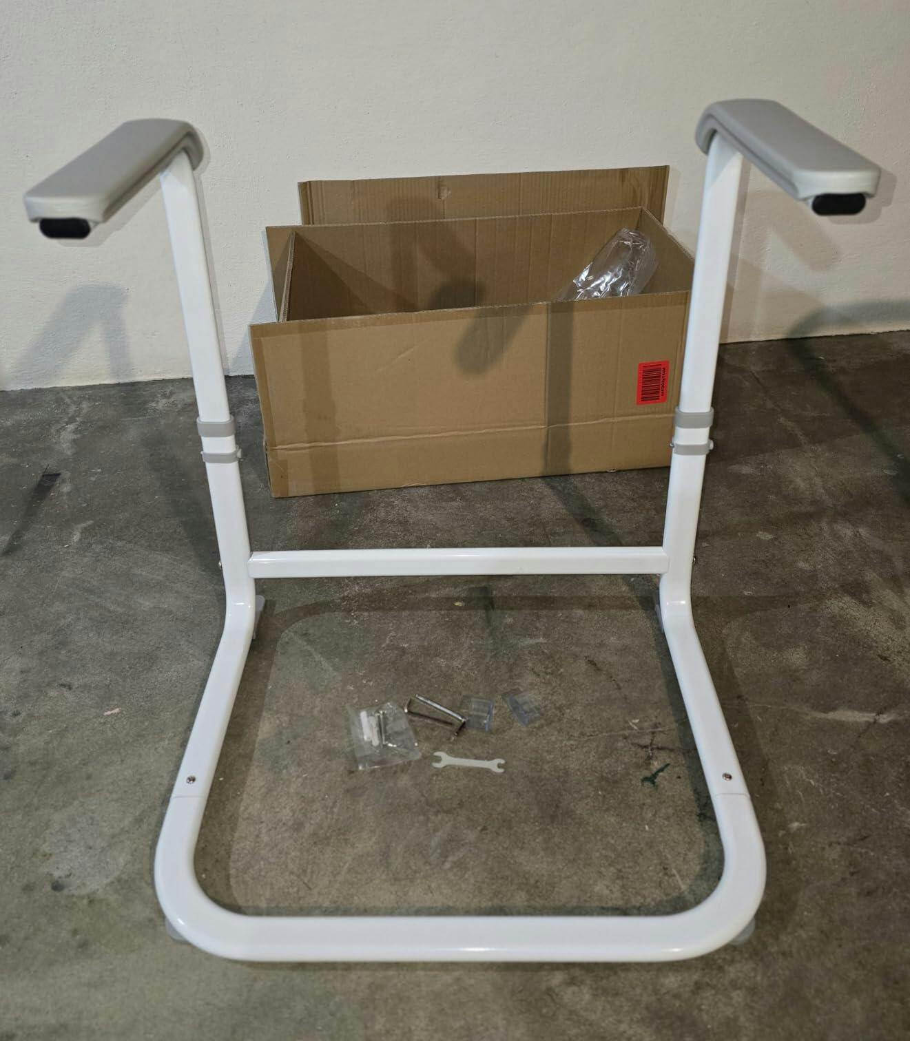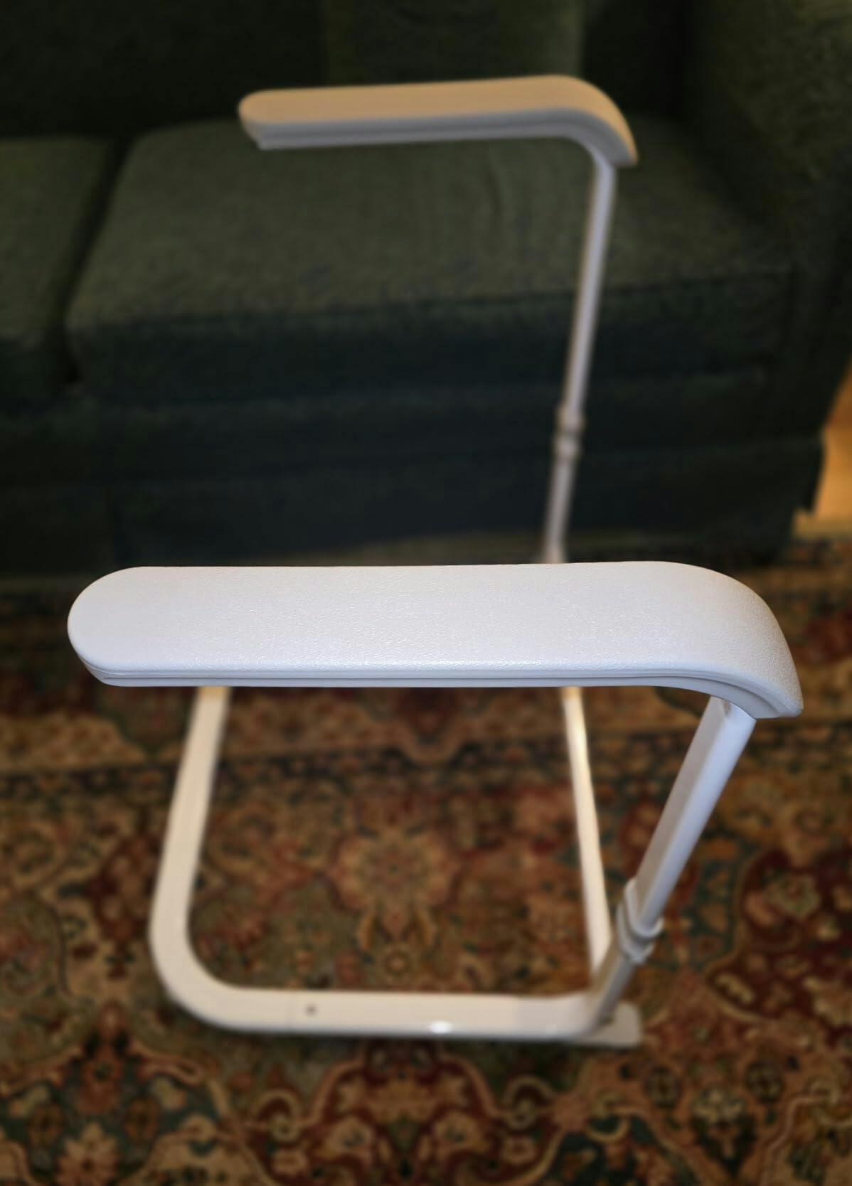 This armrest is a game changer. It was an easy DIY project. The fact that it is adjustable for different heights and different kinds of furniture is exceptional. The product is sturdy; the handles and the armrest are solid. It slides underneath whatever furniture you have, and I love that it is not supported by your weight but by the piece of furniture you are using with the armrest. It is slip-resistant and an exceptional product. I think anyone with a disability, elderly individuals, or those with injuries will find this incredibly useful. Every household should have one just in case. I highly recommend this product. While I can’t speak to its long-term durability yet, it seems as durable as any other piece of accessibility equipment I’ve received. Again, I highly recommend this product.