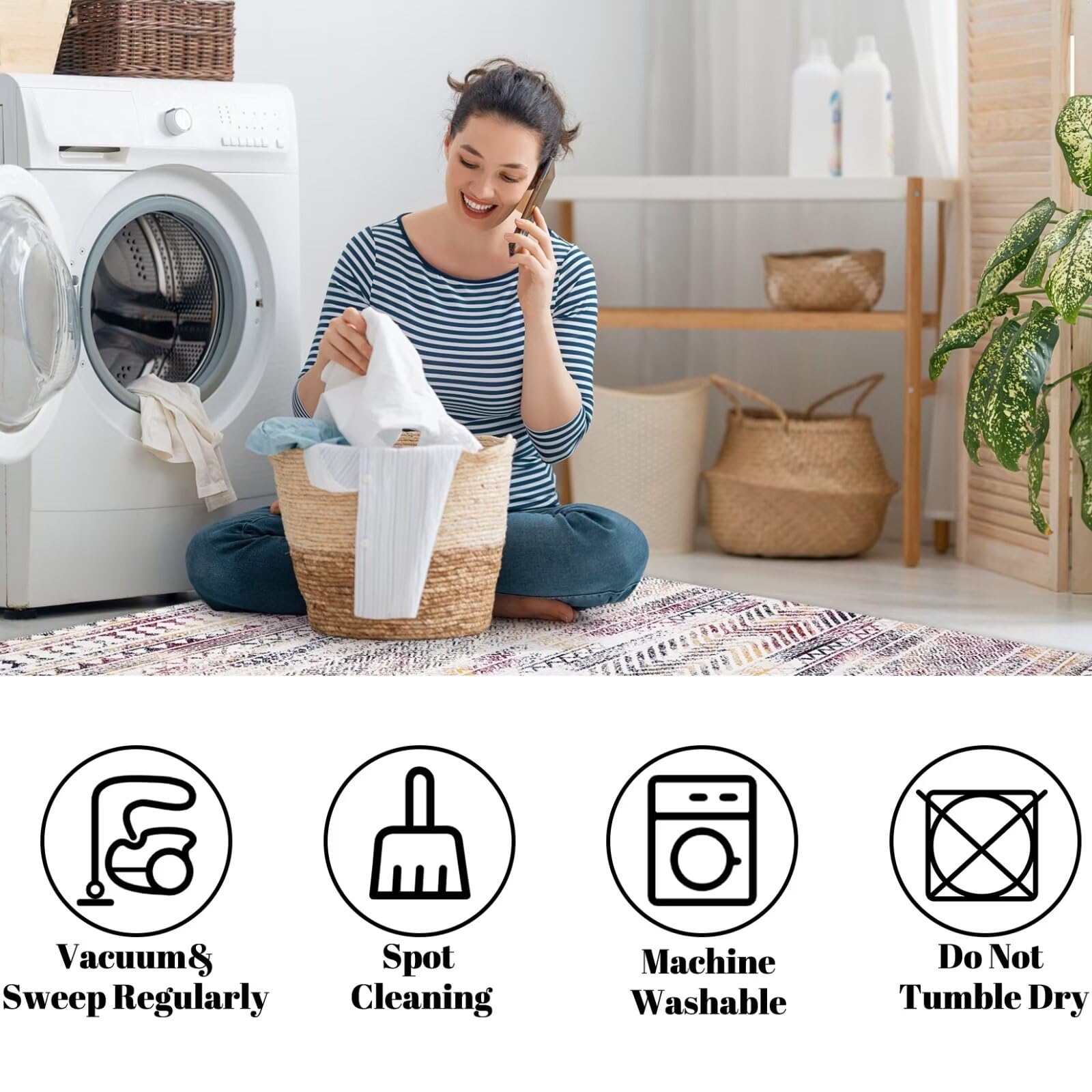 - EASY CLEAN - Our printed rugs are machine washable, making care convenient; Keeps rug looking good as new; Simply toss in the machine for a quick wash, then dry using air only setting without heat. Daily clean can use vacuum cleaner to clean the dusts, easy to treat.
