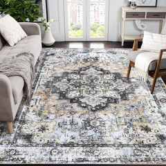 Garvee Machine Washable 8x10 Area Rug for Living Room Bedroom Farmhouse Home/Office Decor Carpet Vintage Boho Style Ultra-Soft with Non-Slip Backing, Teal/Beige
