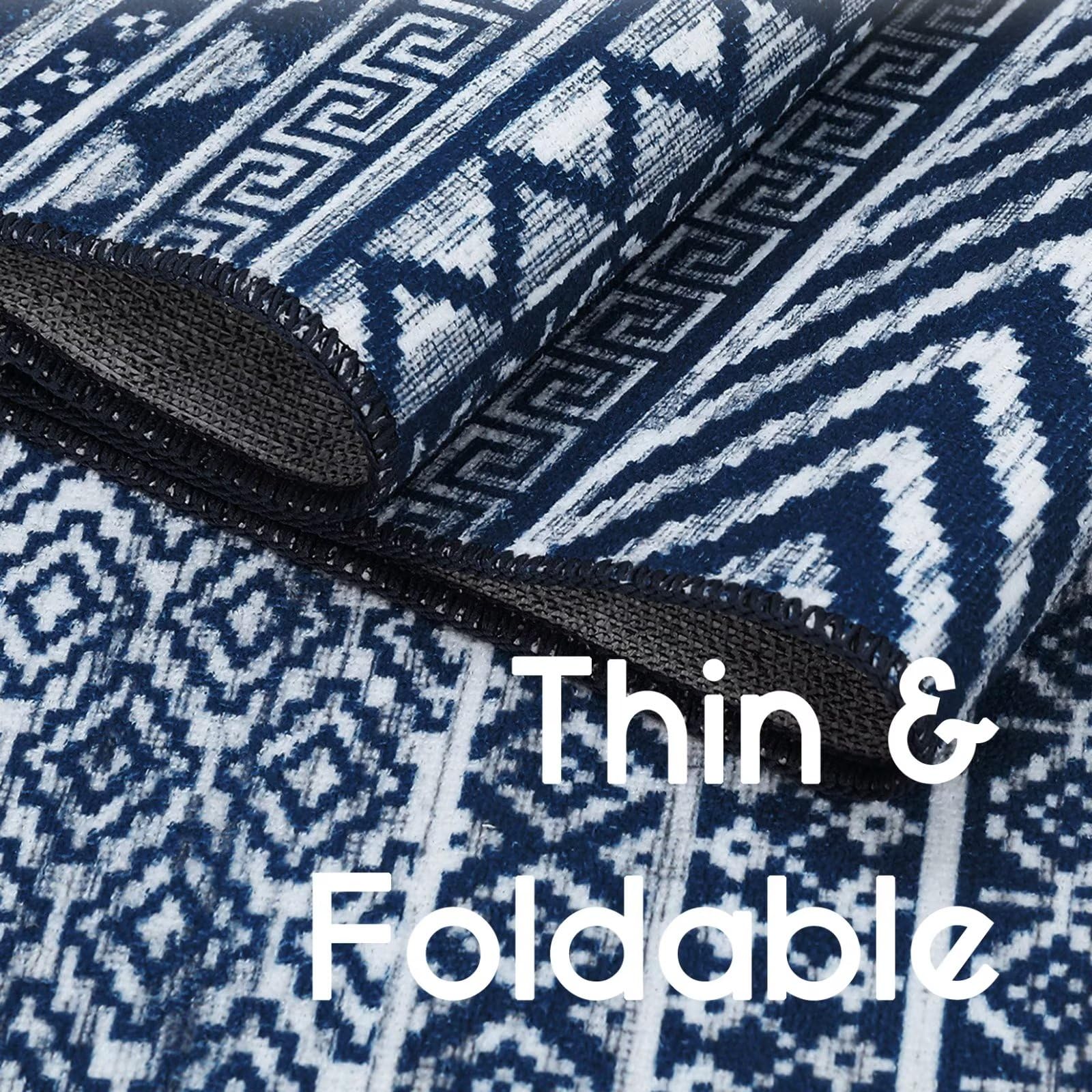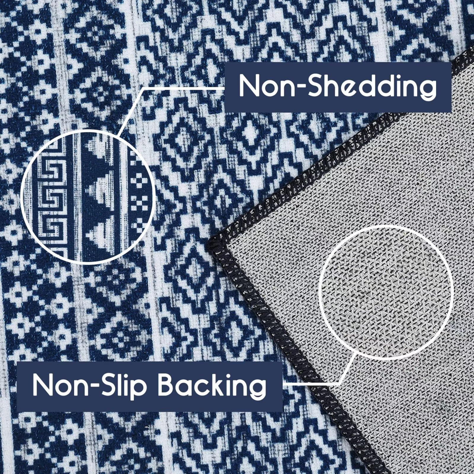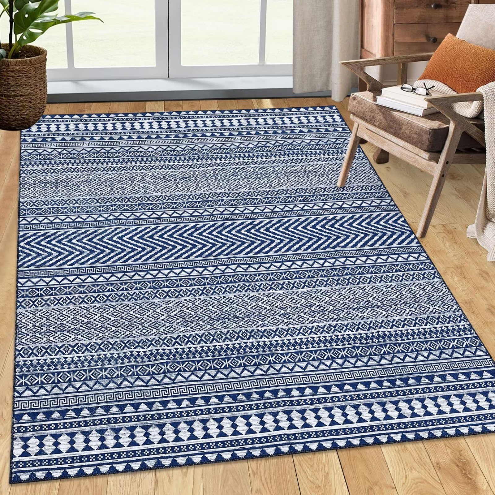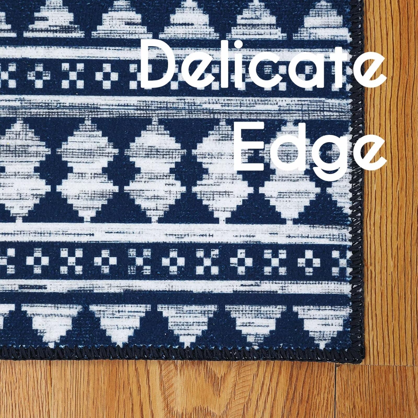 Garvee Moroccan Area Rug 4x6 Boho Geometric Floor Cover Soft Chenille Indoor Area Rugs Machine Washable Vintage Floor Carpet for Living Room Bedroom Non-Slip Floor Decor Foldable Thin Rug Navy