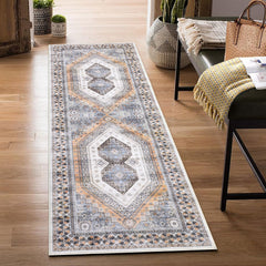 Garvee Washable Runner Rug 2x6 Stain Resistant Entryway Rug Non-Slip Backing Rugs for Bedroom Kitchen Low Pile Accent Rug Indoor Floor Decor, Light Orange